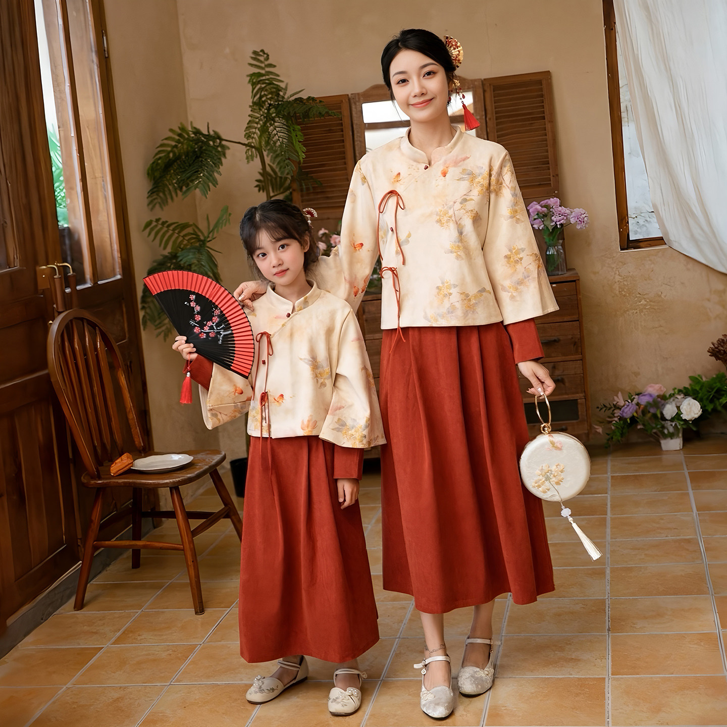 花相知原创对穿交秋冬加绒袄明制马面裙日常通勤改良汉服女弓袋袖