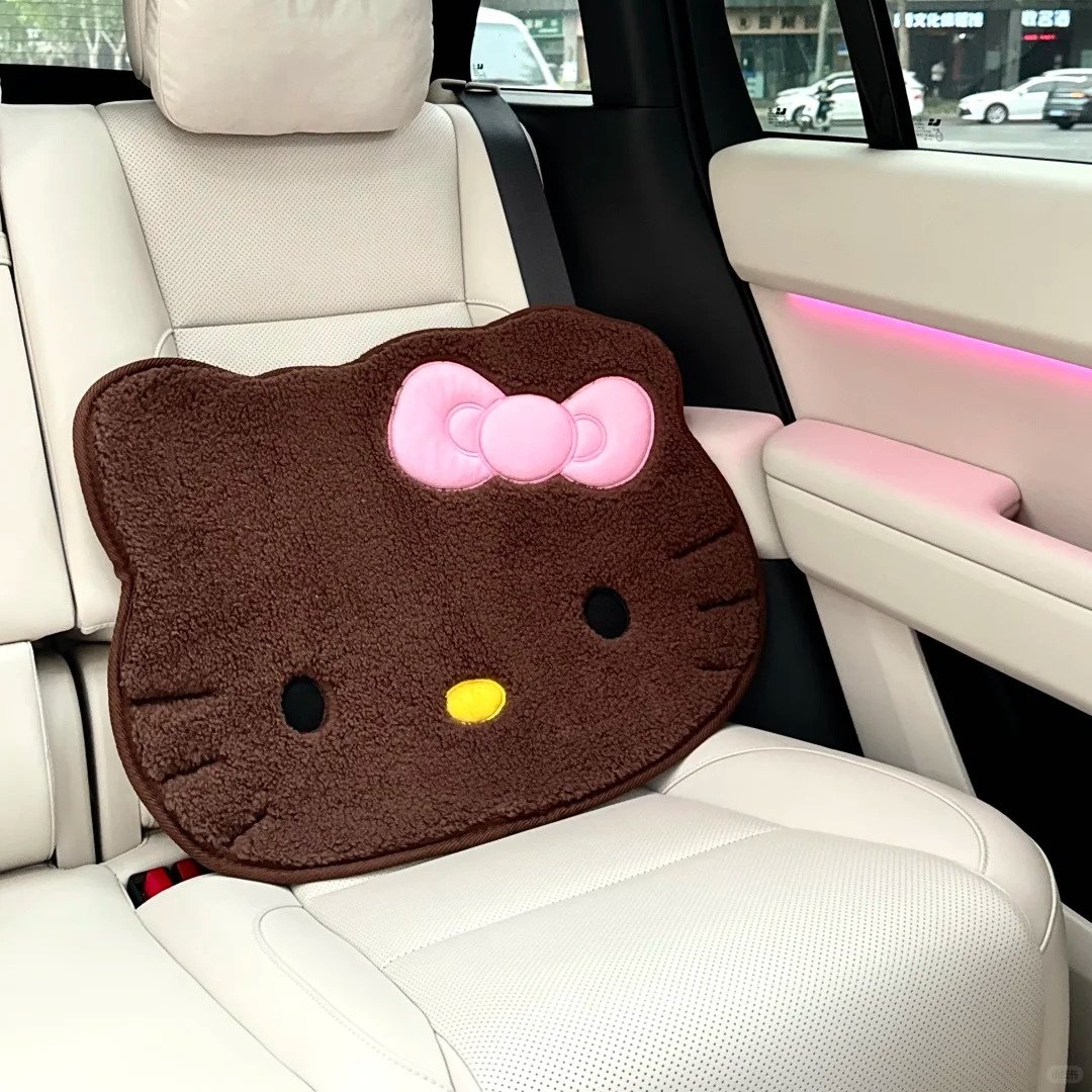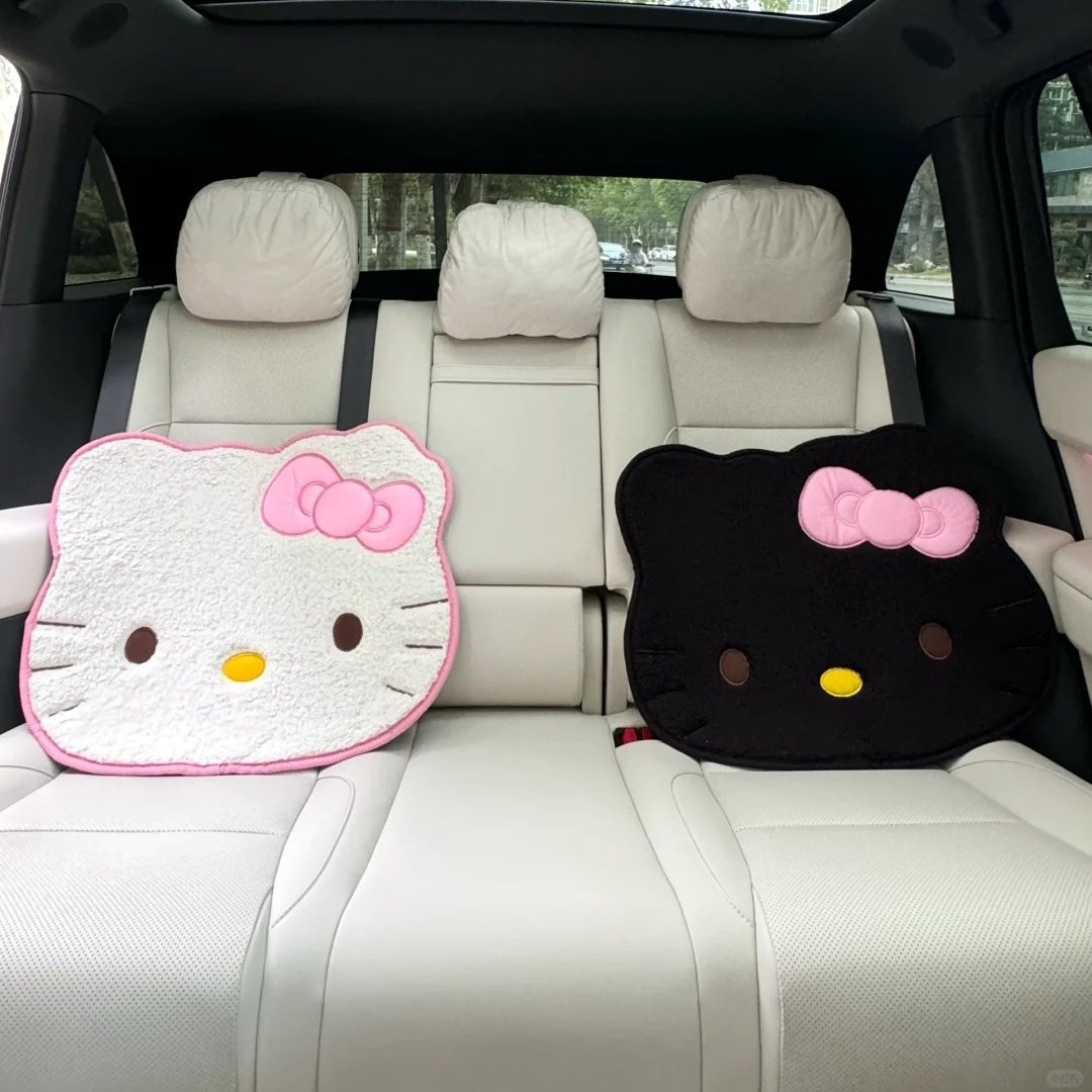 汽车坐垫冬季 毛绒卡通可爱kt猫座垫套粉色女生通用座套车载坐垫