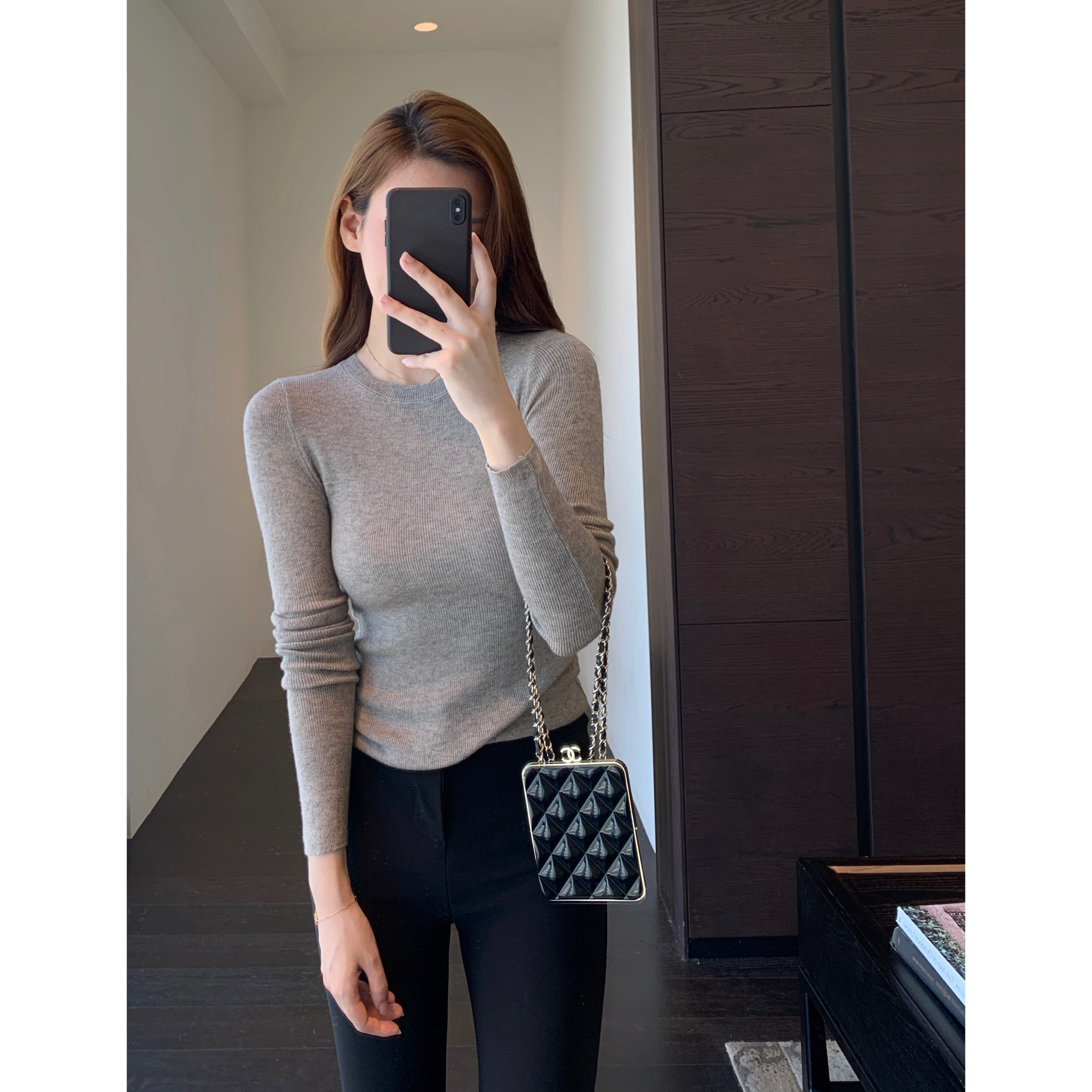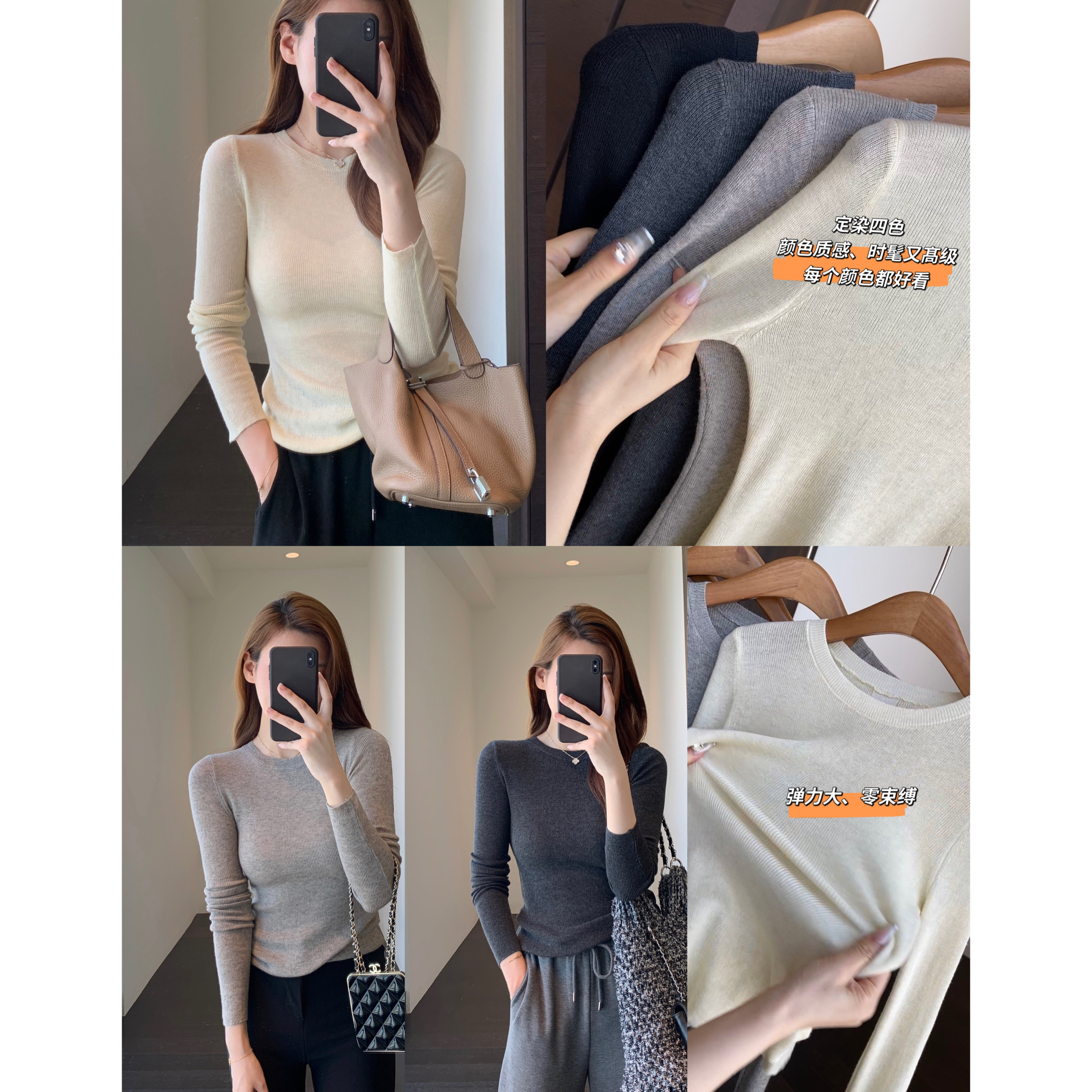 女秋冬2025新款 AMR 显瘦针织毛衣打底衫 软糯羊毛混纺保暖修身