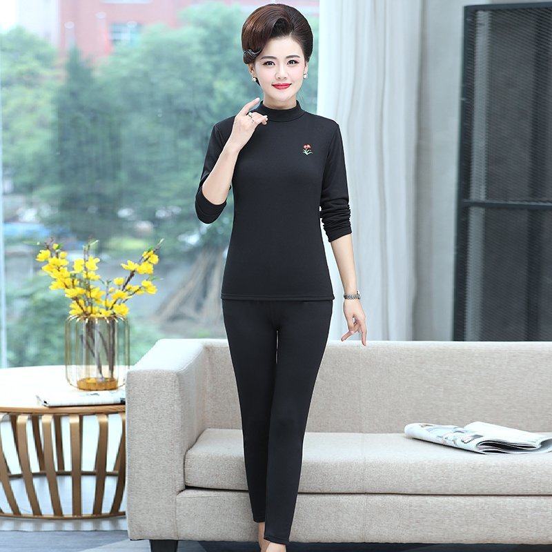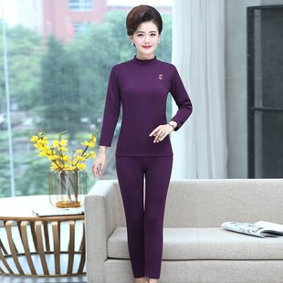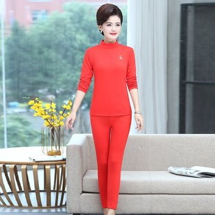 百搭保暖内搭上衣裤 两件套装 子纯色厚 中老年妈妈秋衣秋裤 秋冬新款