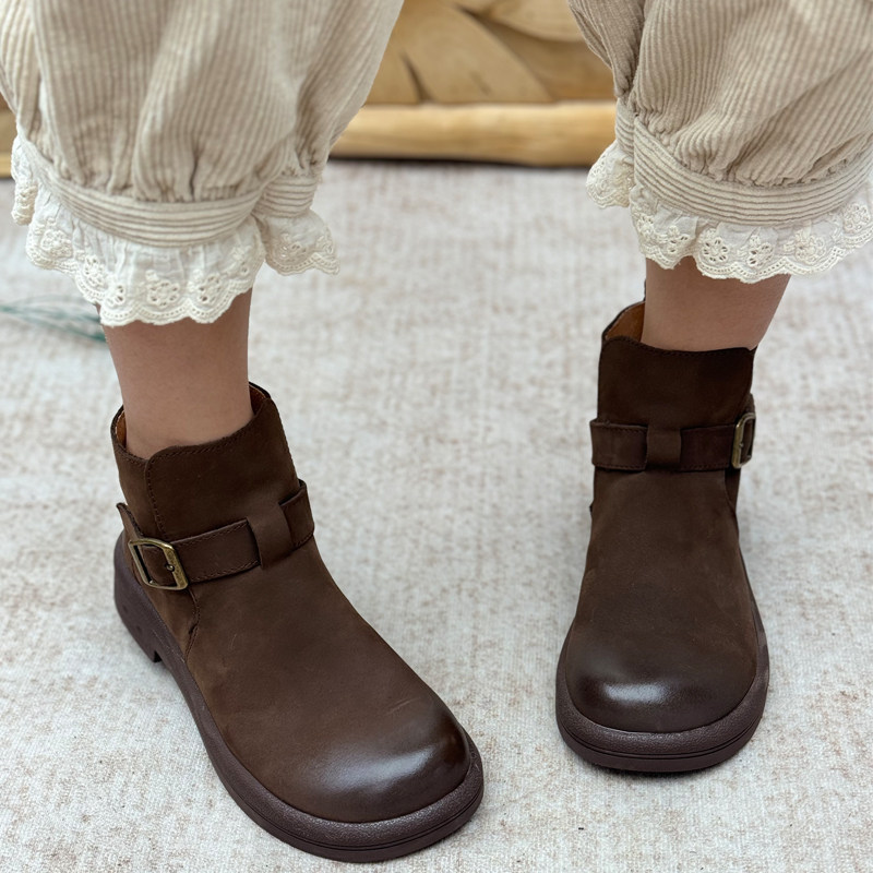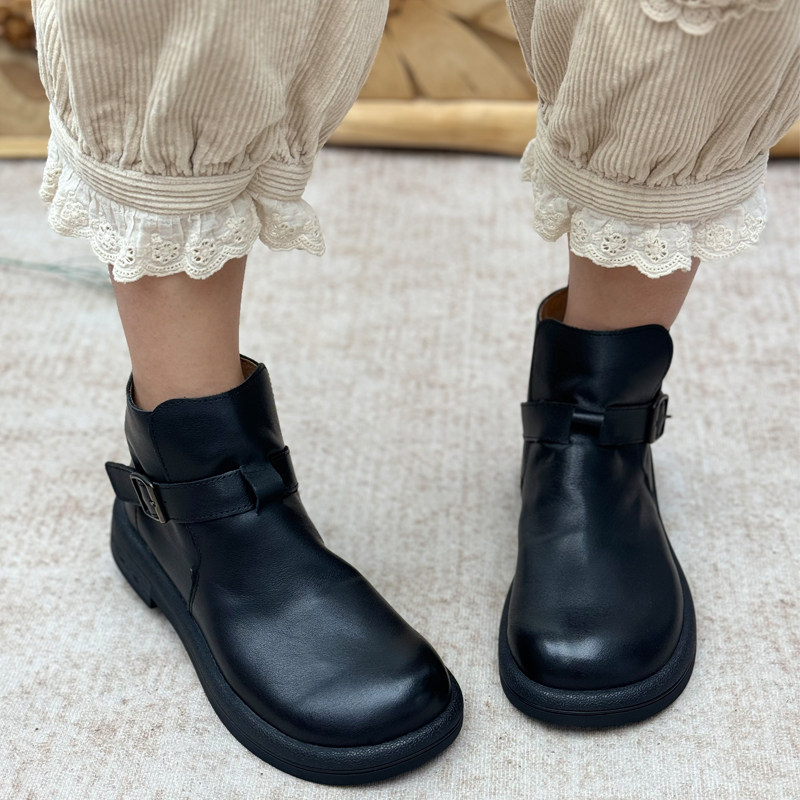 星期六秋冬女靴英伦马丁靴女靴圆头时尚 靴 中跟短筒短靴子复古时装
