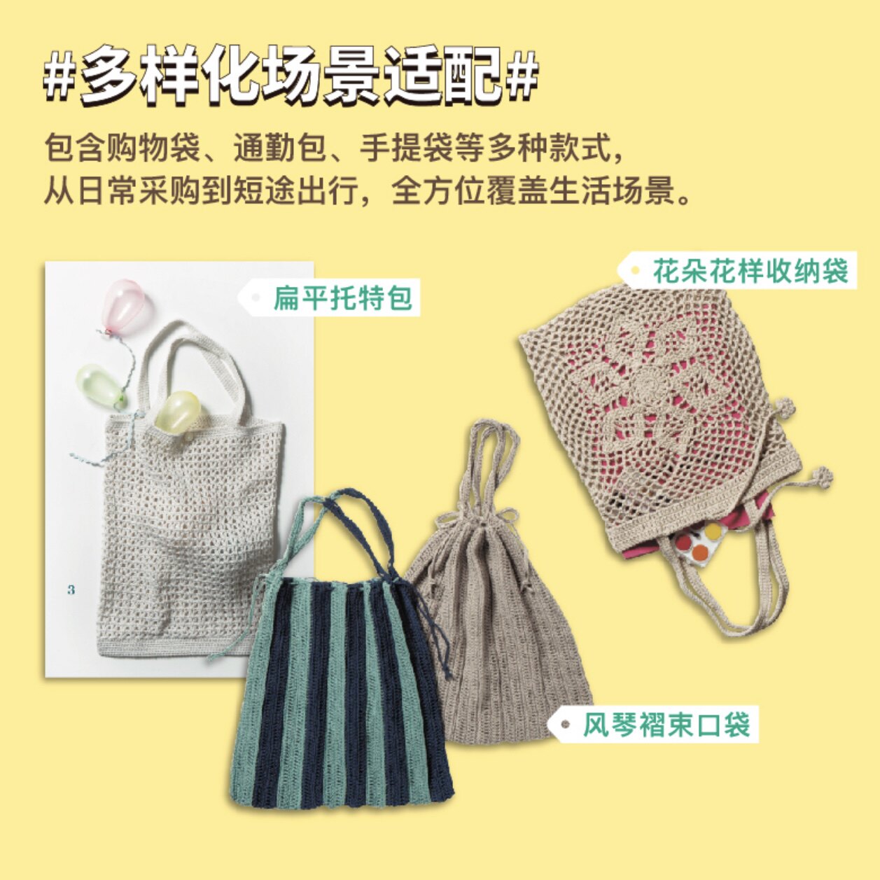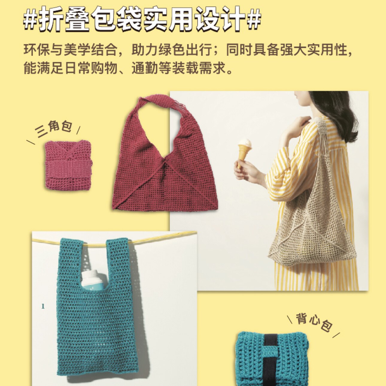 可以折起来 绿色出行新选择 实用美学 折叠包袋 钩针编织可爱
