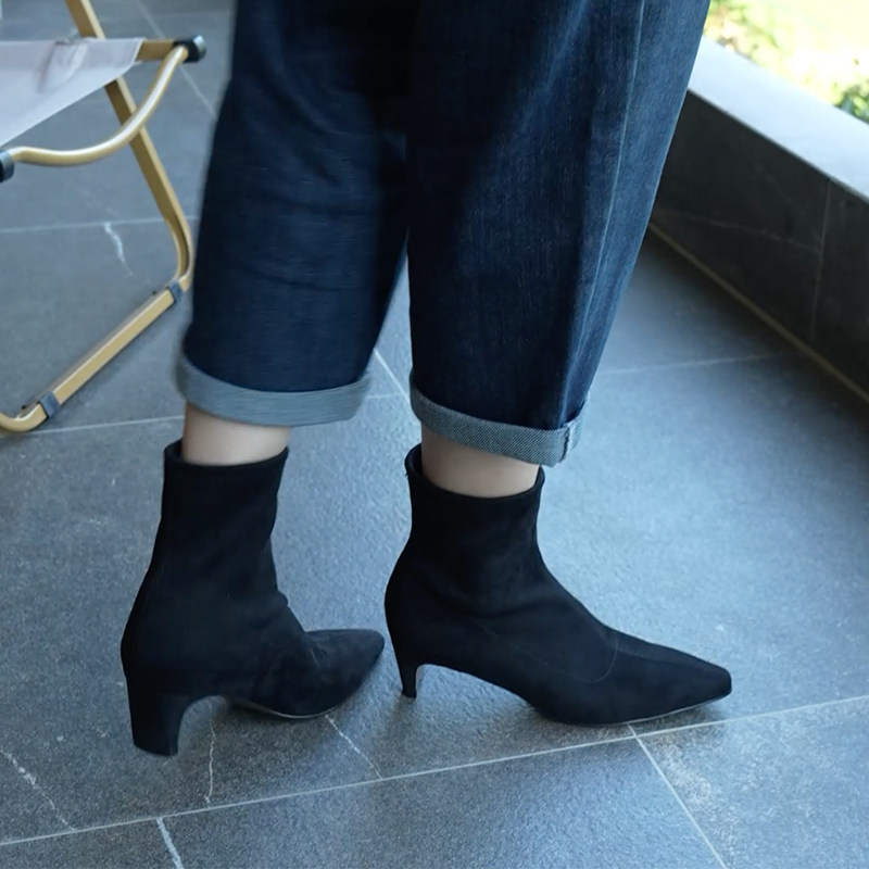 靴女瘦瘦短靴弹力靴CEG07DZ5 加绒时装 TATA他她喵爪靴2025冬季 新款