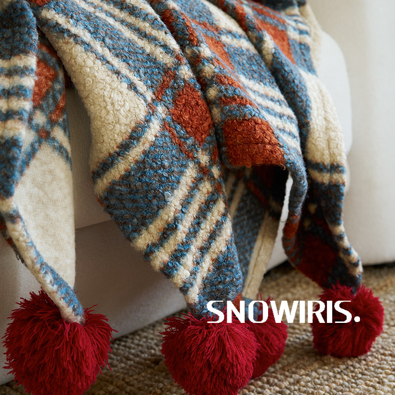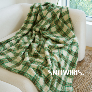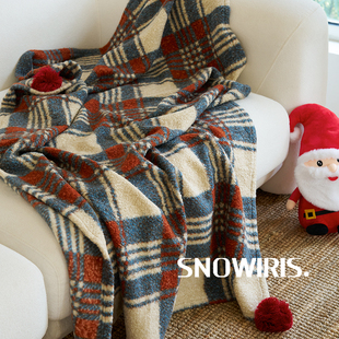 节日圣诞红绿格纹毛毯针织加厚沙发毯摄影装 午休毯 饰喜庆中古软装