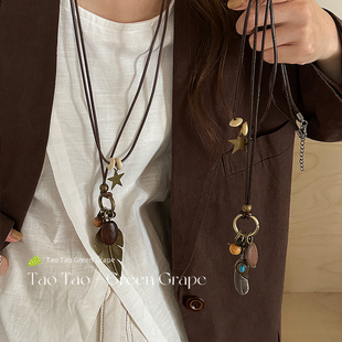 小众星星爱心叠戴项链女叠戴长款 毛衣链复古毛衣颈链腰链挂脖配饰