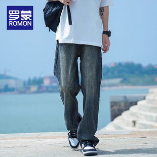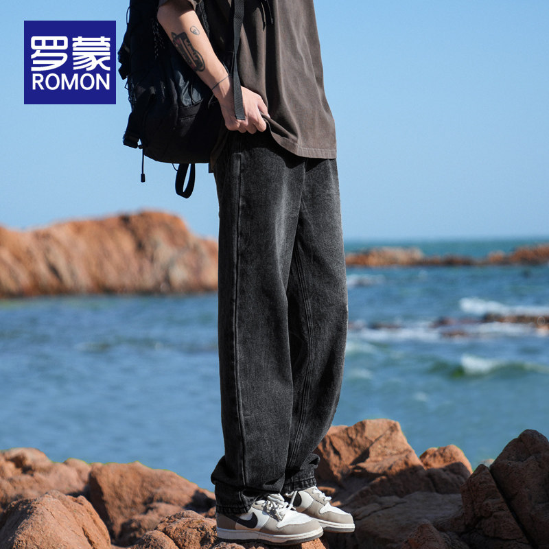 阔腿裤 罗蒙加绒加厚牛仔裤 秋冬百搭美式 2025新款 男生潮牌直筒长裤