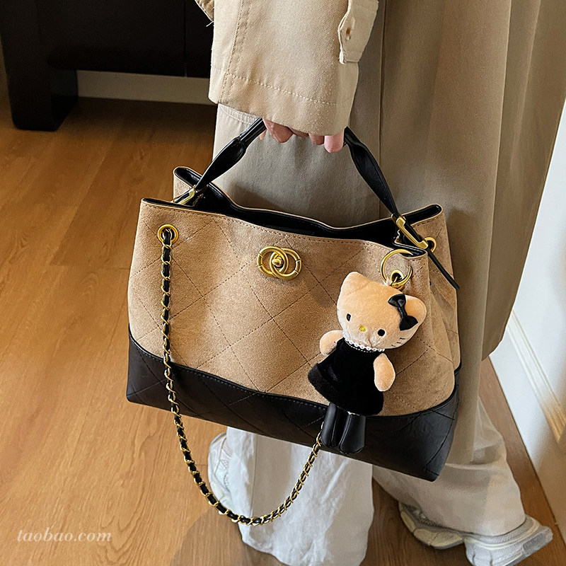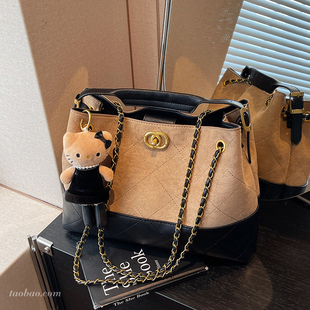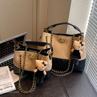 复古磨砂包包女2025秋冬季 通勤百搭单肩斜挎包超火手提水桶包 新款