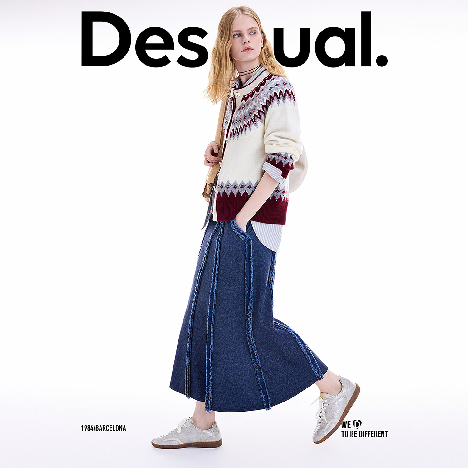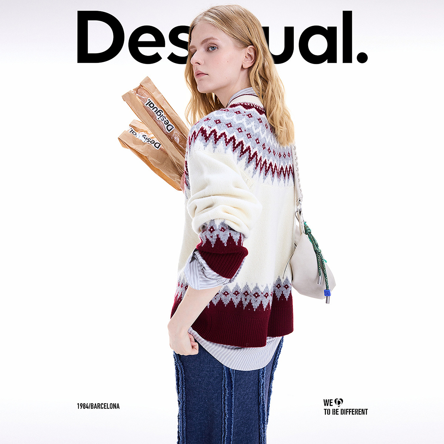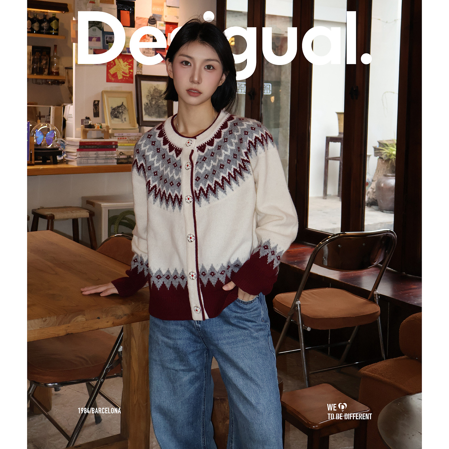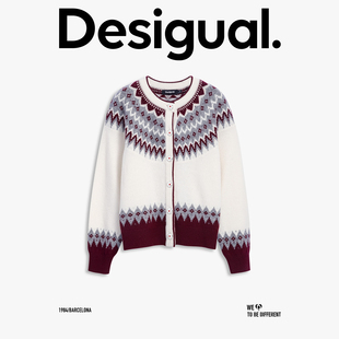 女士针织衫 Desigual 羊毛费尔岛提花开衫 25秋冬新品 博主同款