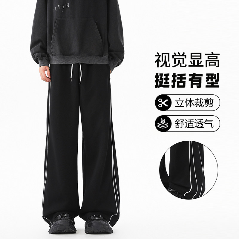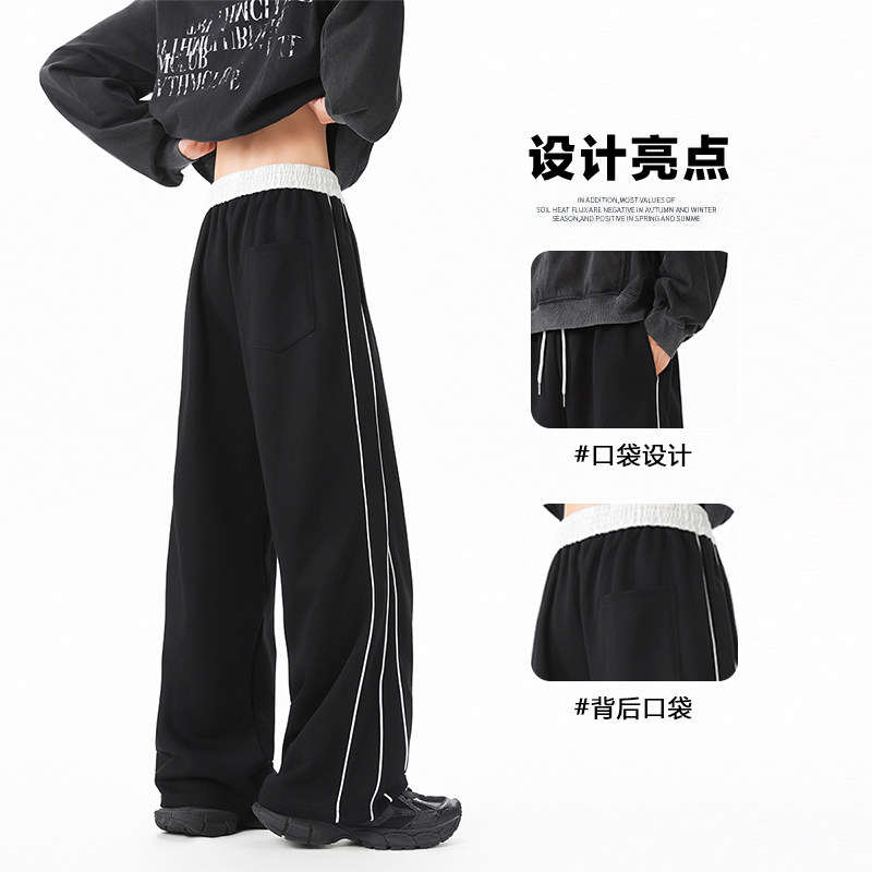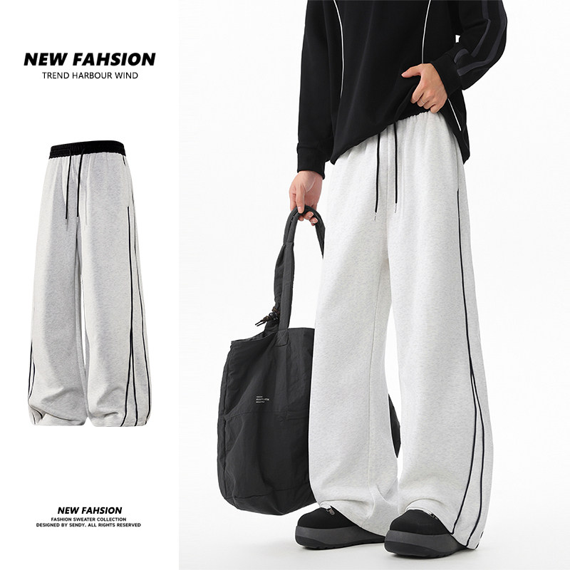 9004 男宽松阔腿垂感百搭潮牌YX 当潮马长裤 复古字母运动休闲卫裤