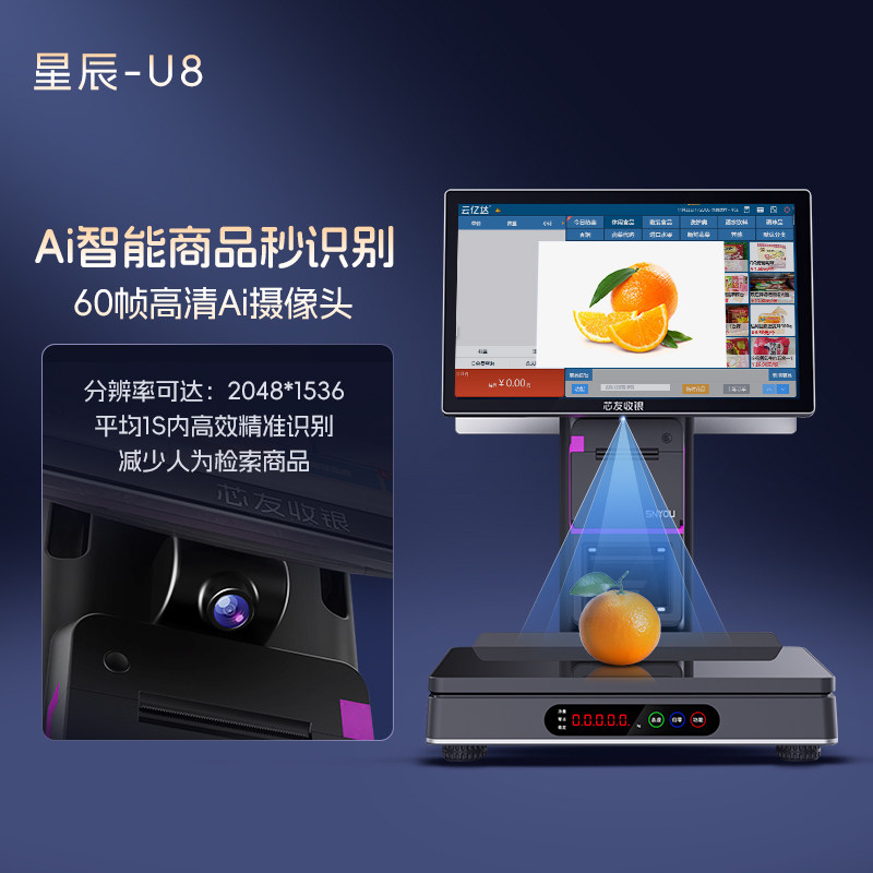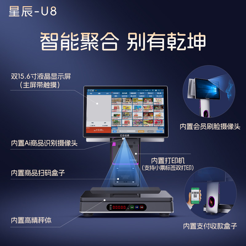 智能Ai识别称重收银机收款 机收银系统管理一体机水果生鲜超市麻辣烫双屏触屏电子秤收银秤