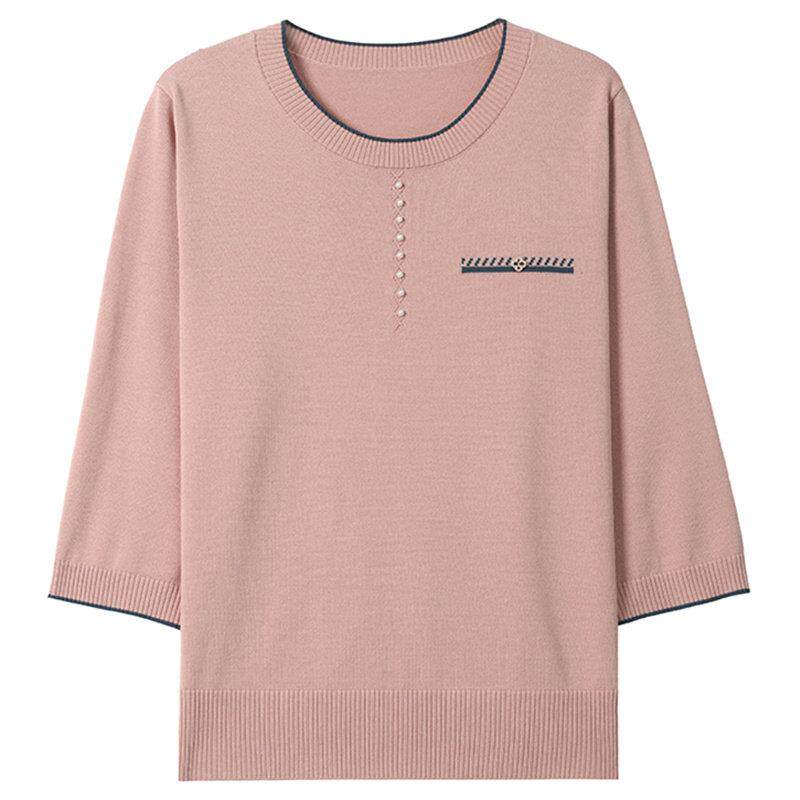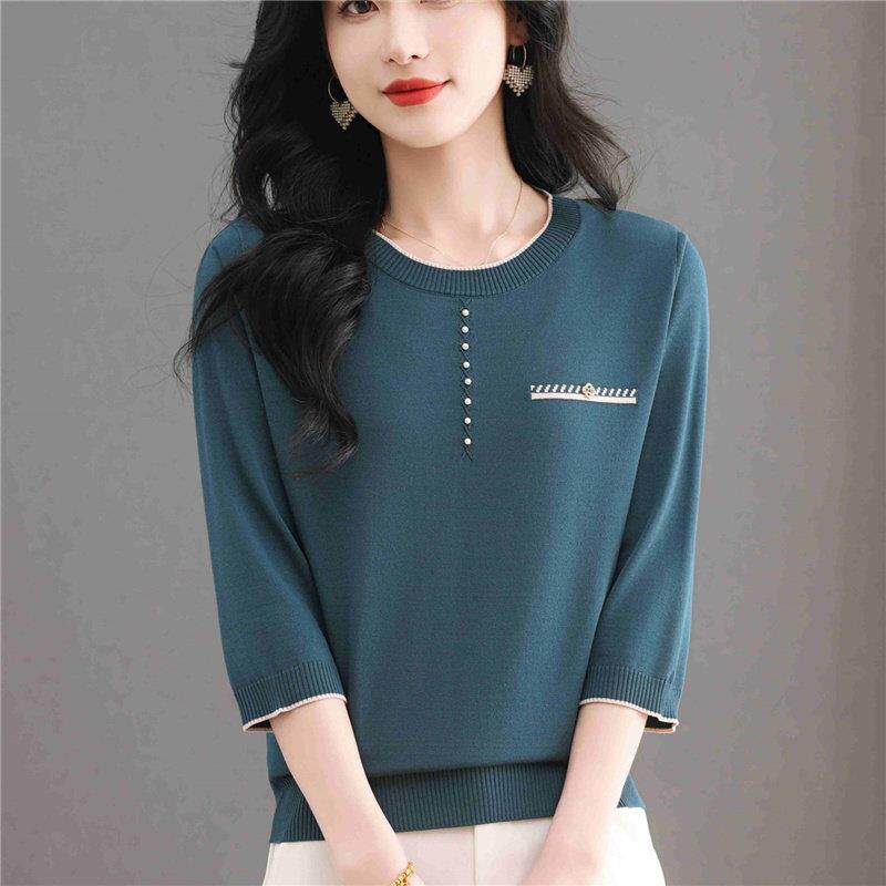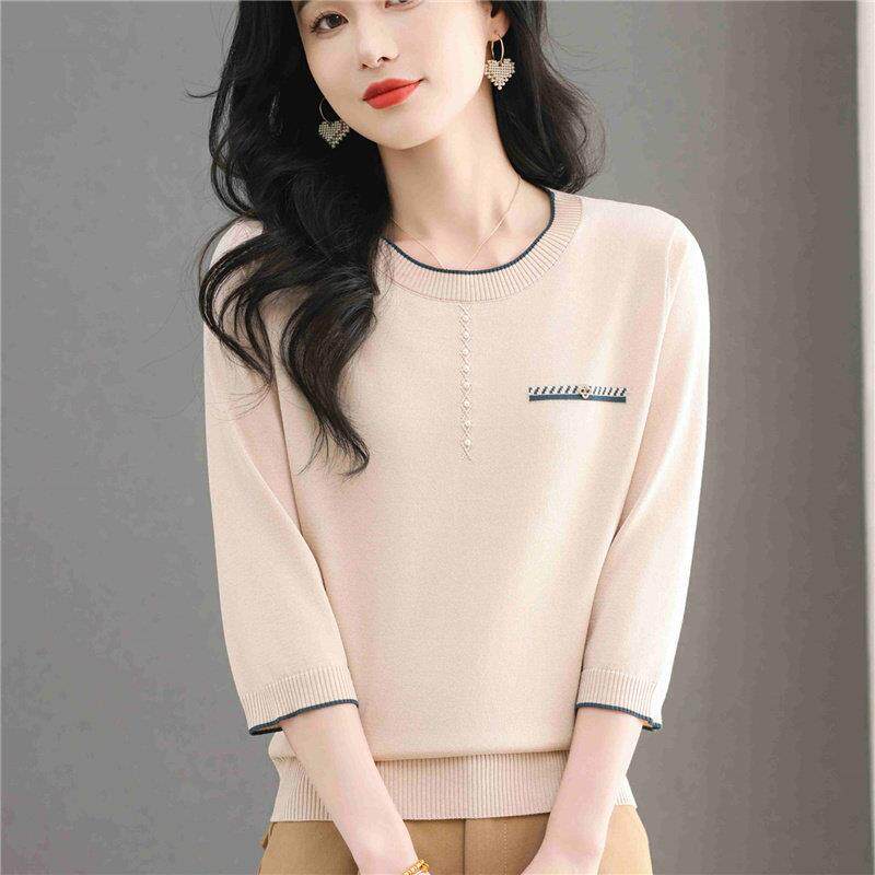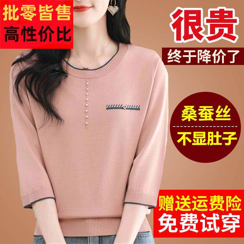 洋气爆款 蚕妈妈春夏装 衣袖 中XLK码 上小 桑丝t恤女冰丝宽松大七分袖