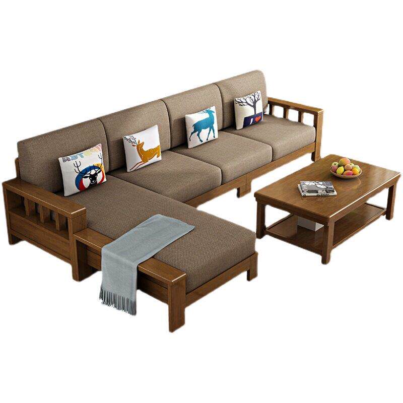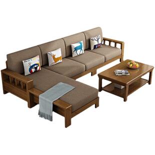 特价 实木沙发三人位组合客厅现代简约大小户型木质布艺家俱 新中式