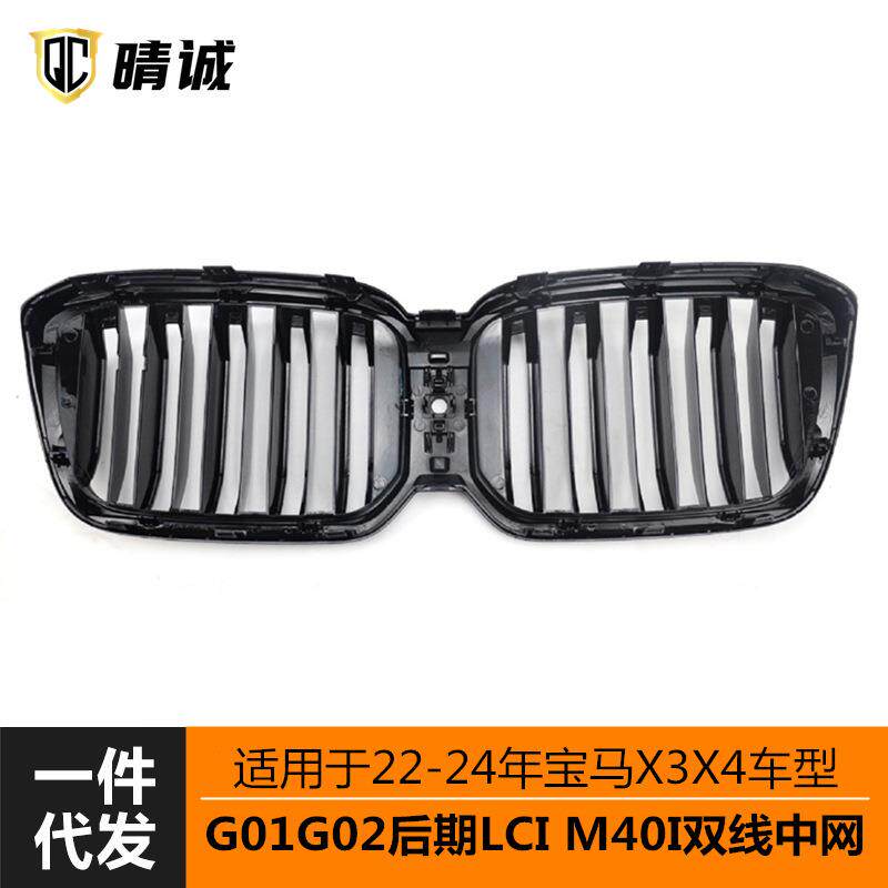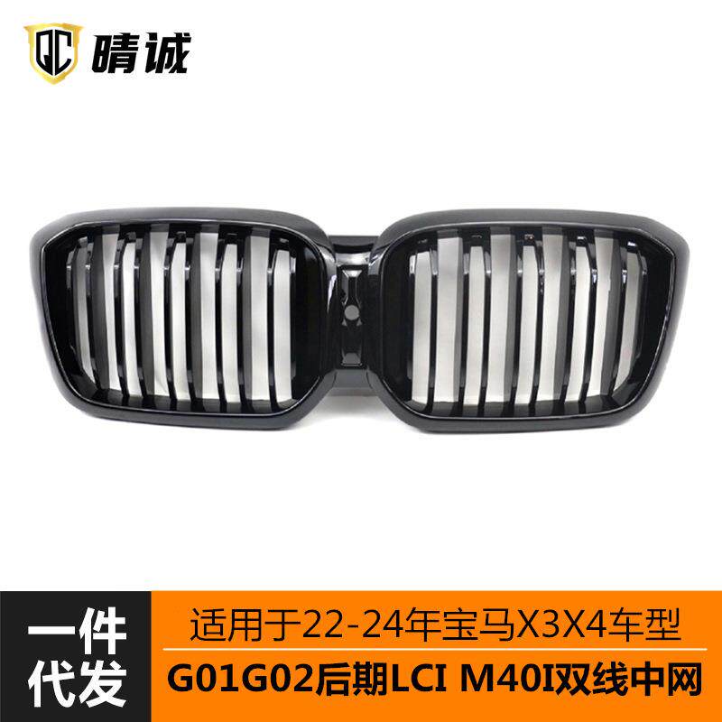 适用于22 亮黑 24年宝马X3X4后期车型G01G02lci双线中网M40I改装