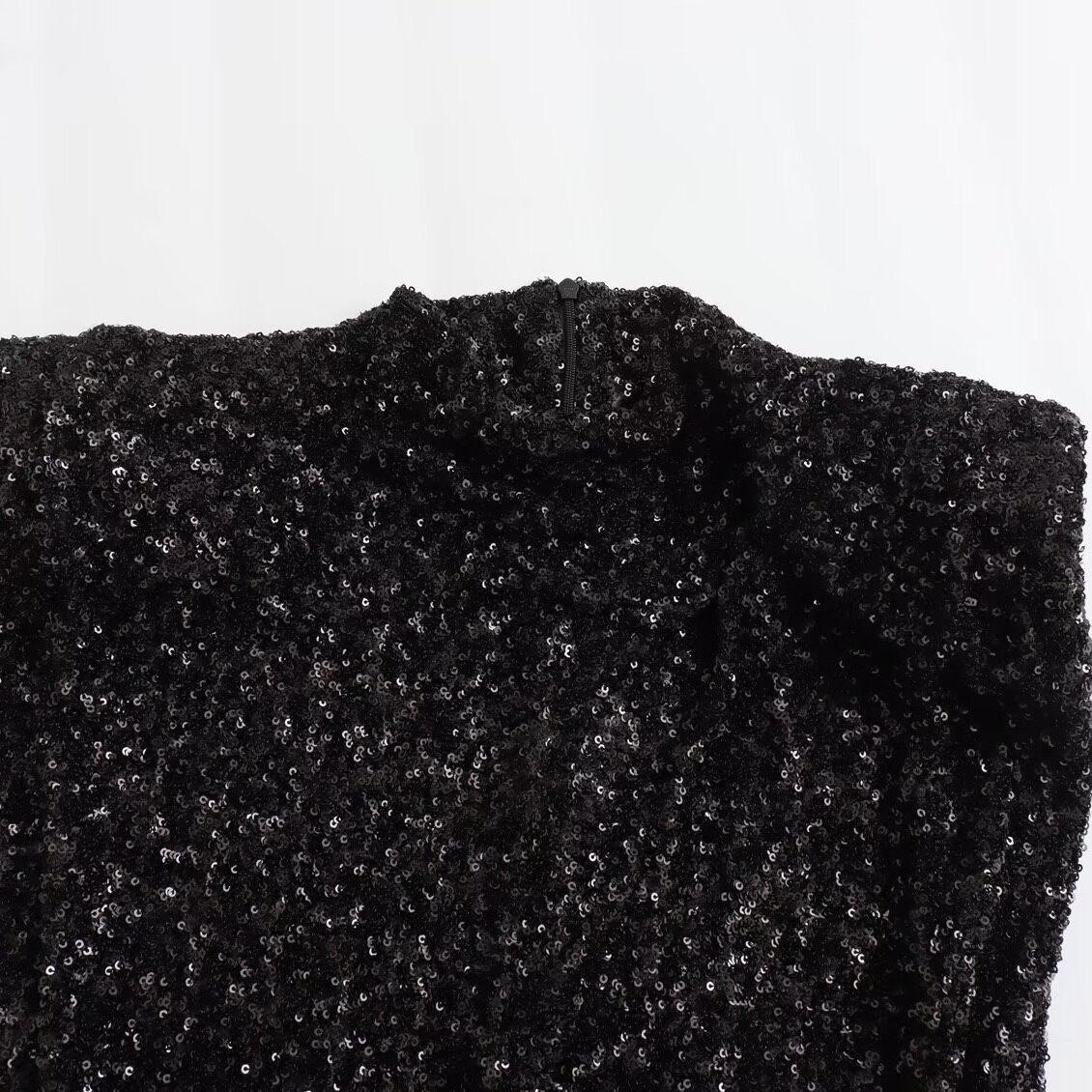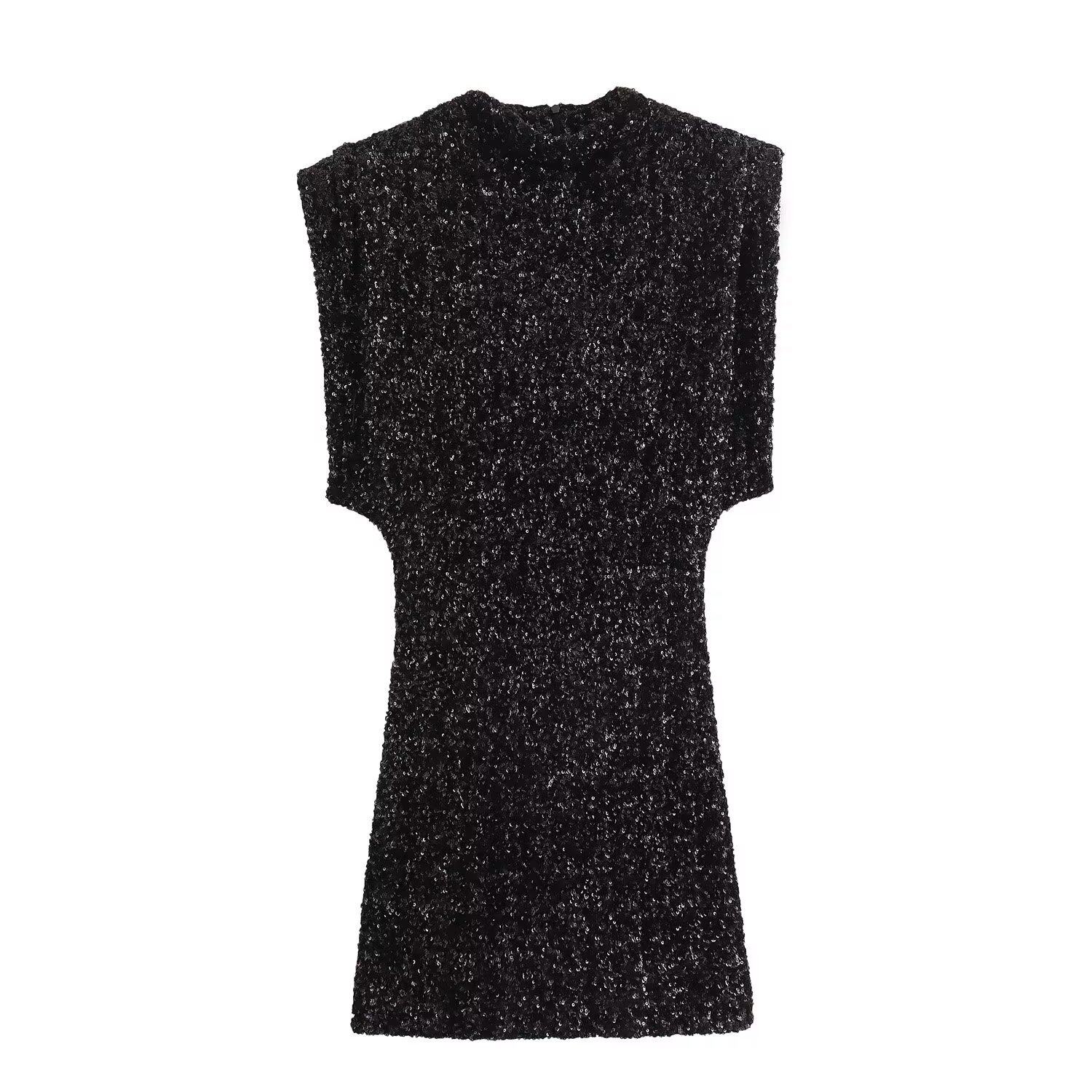 2026Y2K秋冬礼服无袖 黑裙带垫肩珠片饰连衣裙