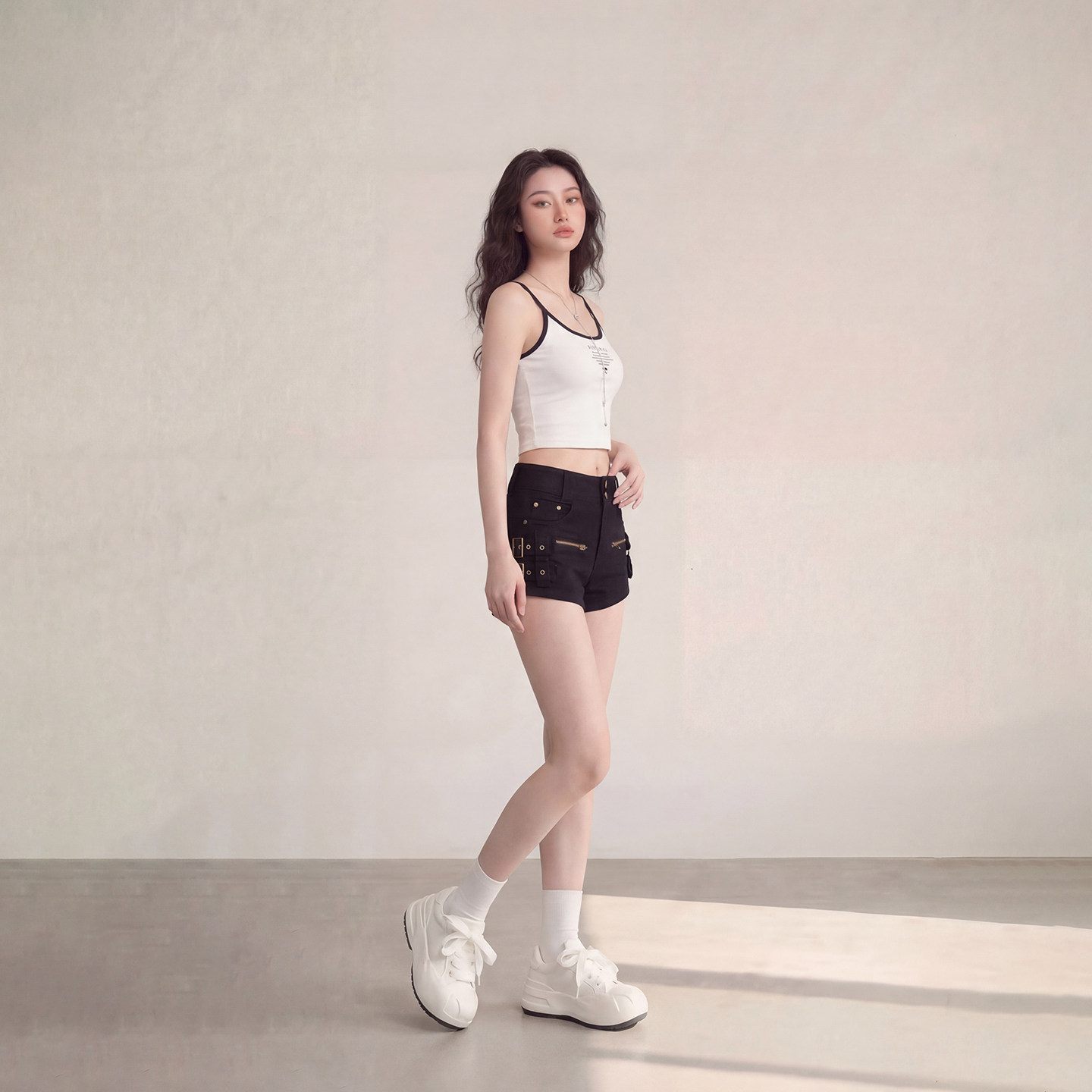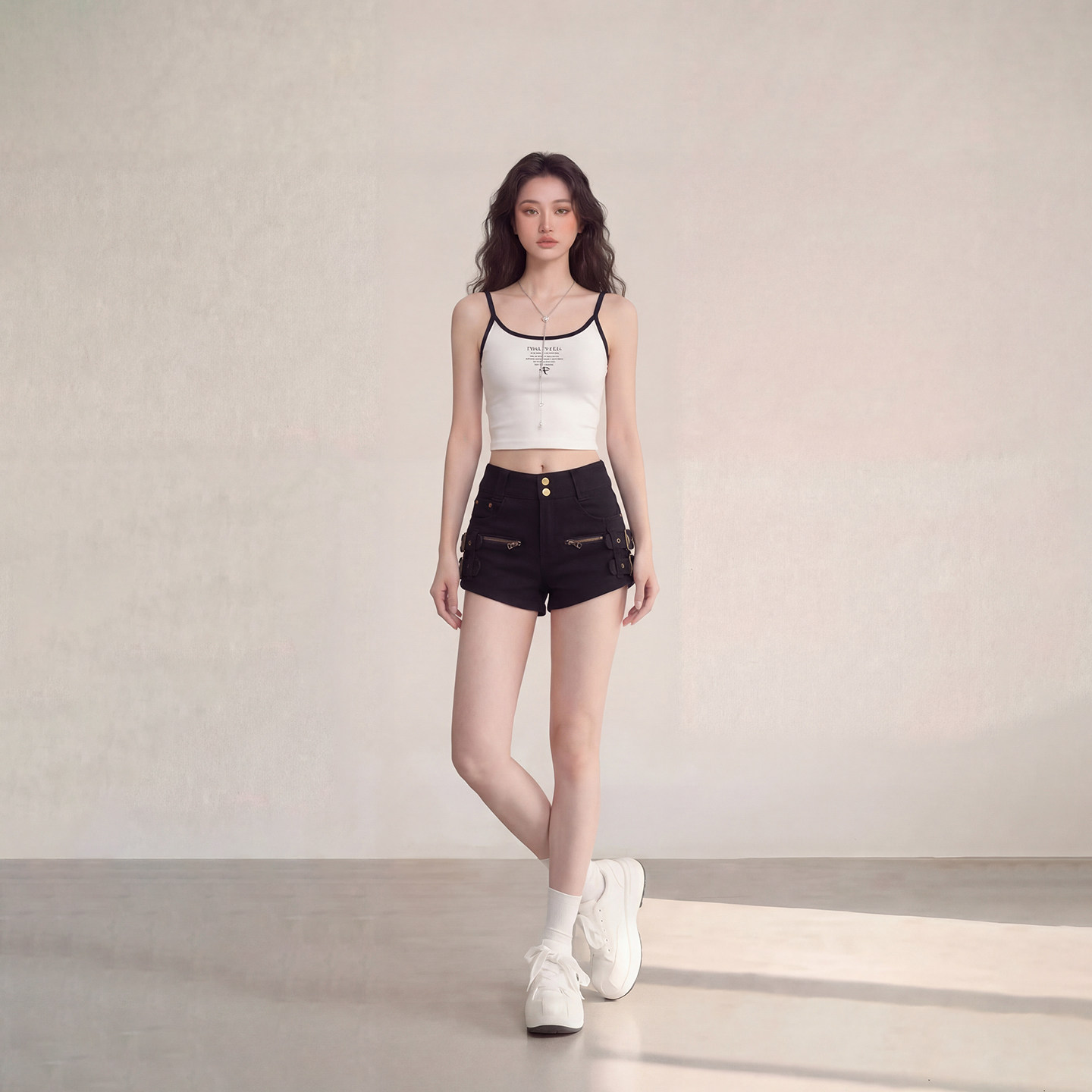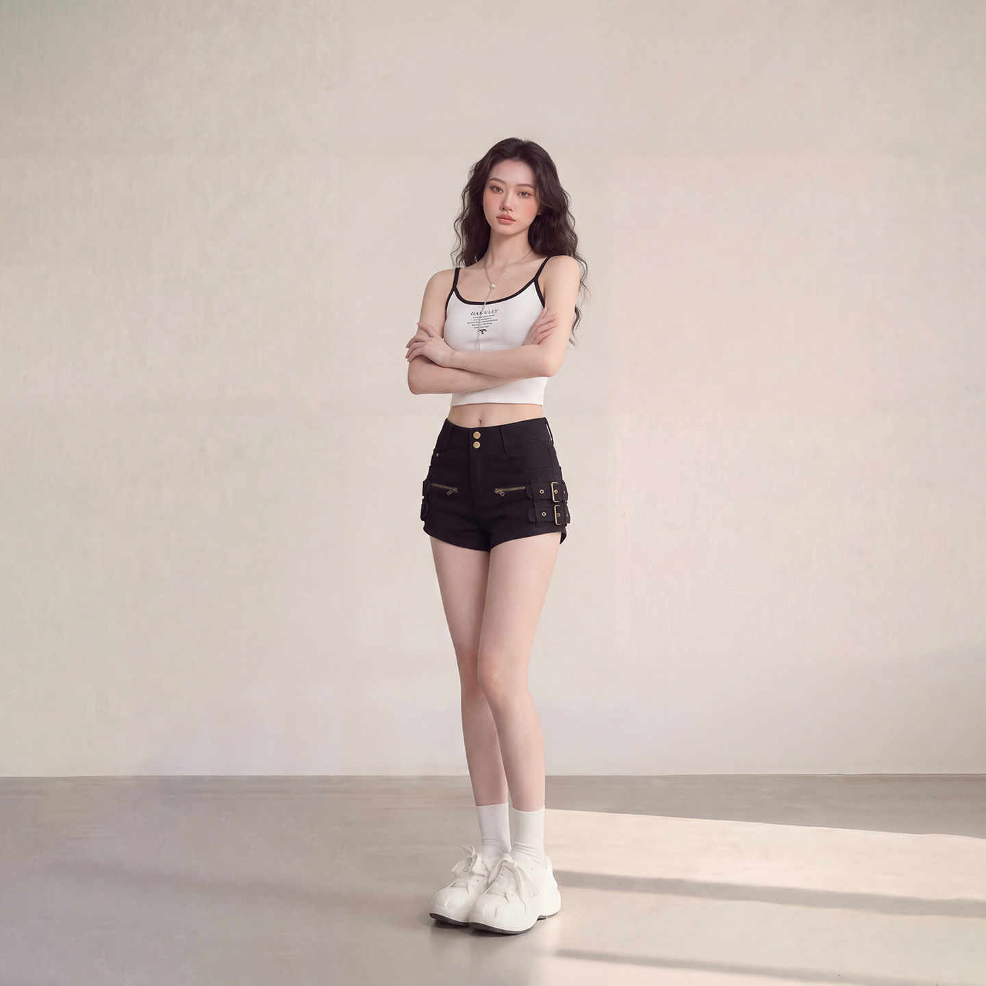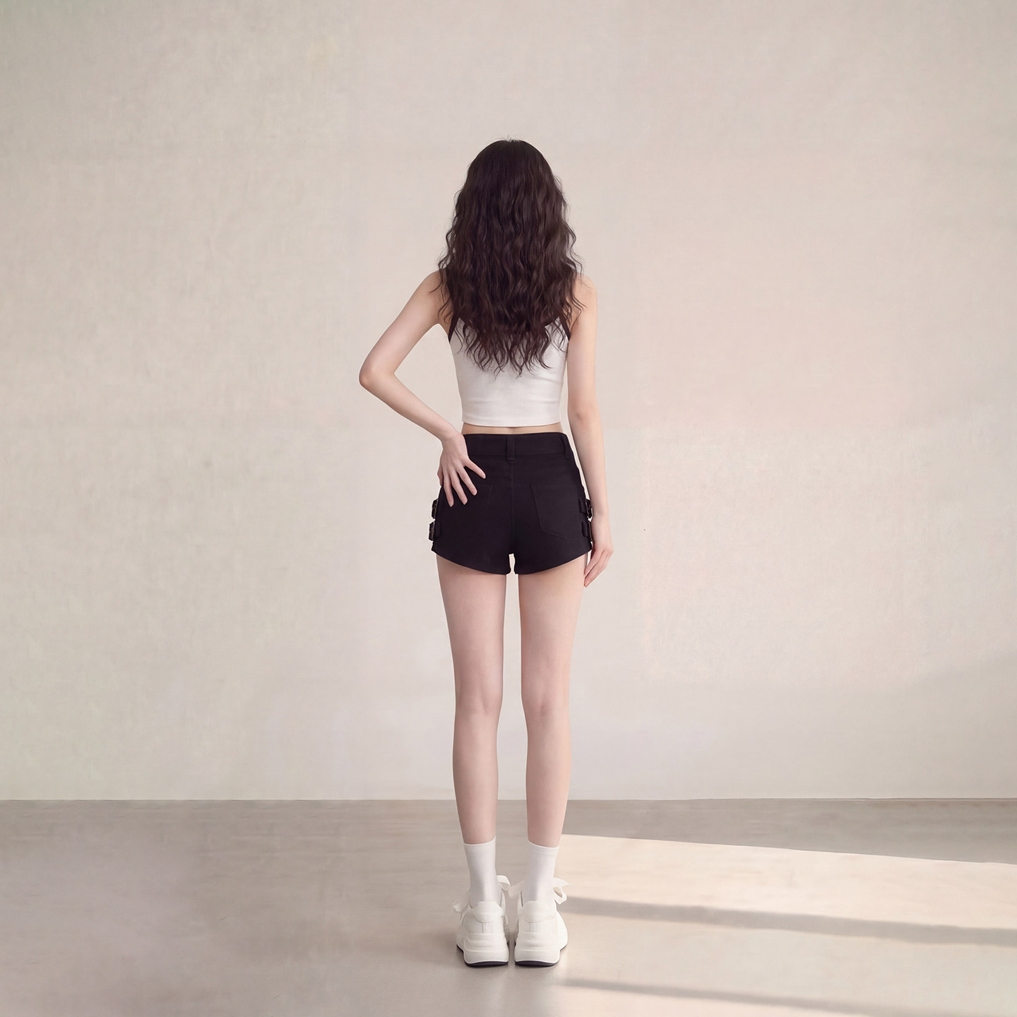 艾格高腰排扣拉链设计牛仔短裤 辣妹风 女黑色潮流显瘦百搭日常热裤