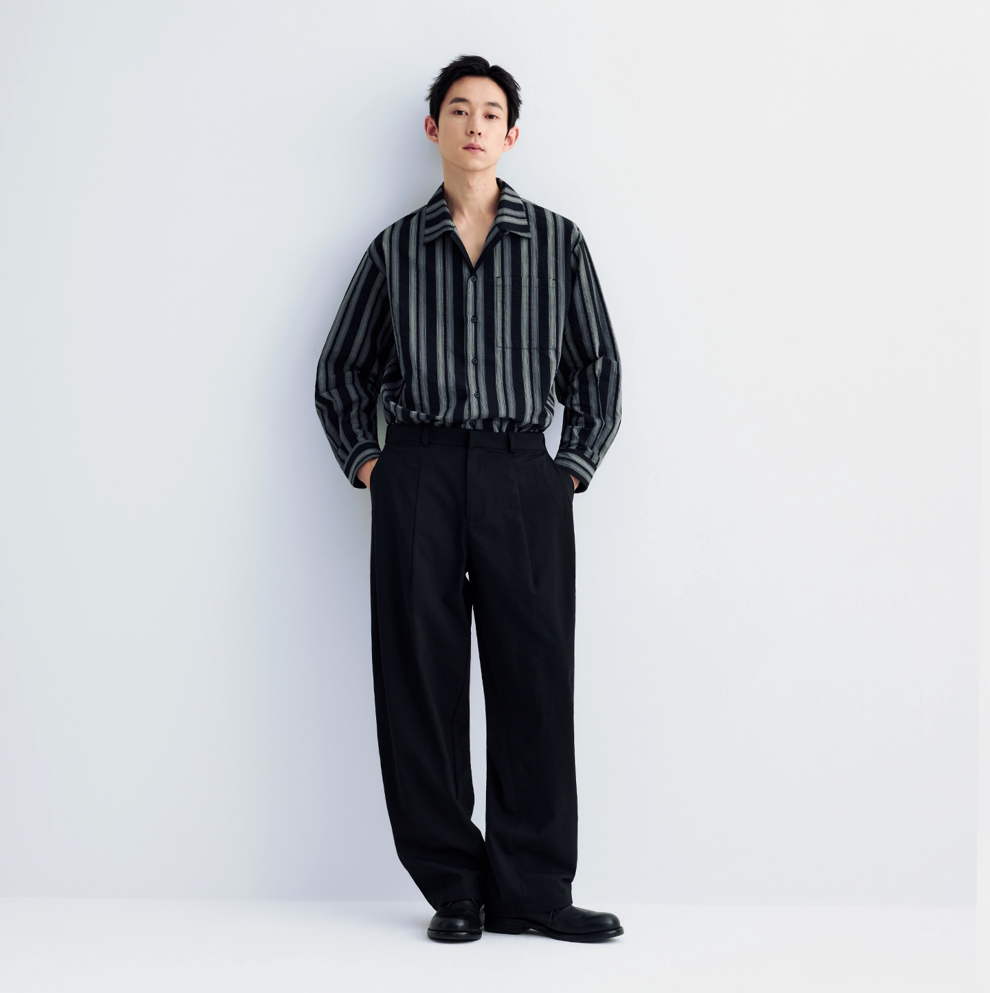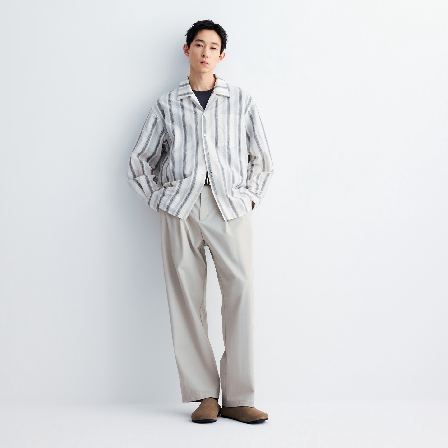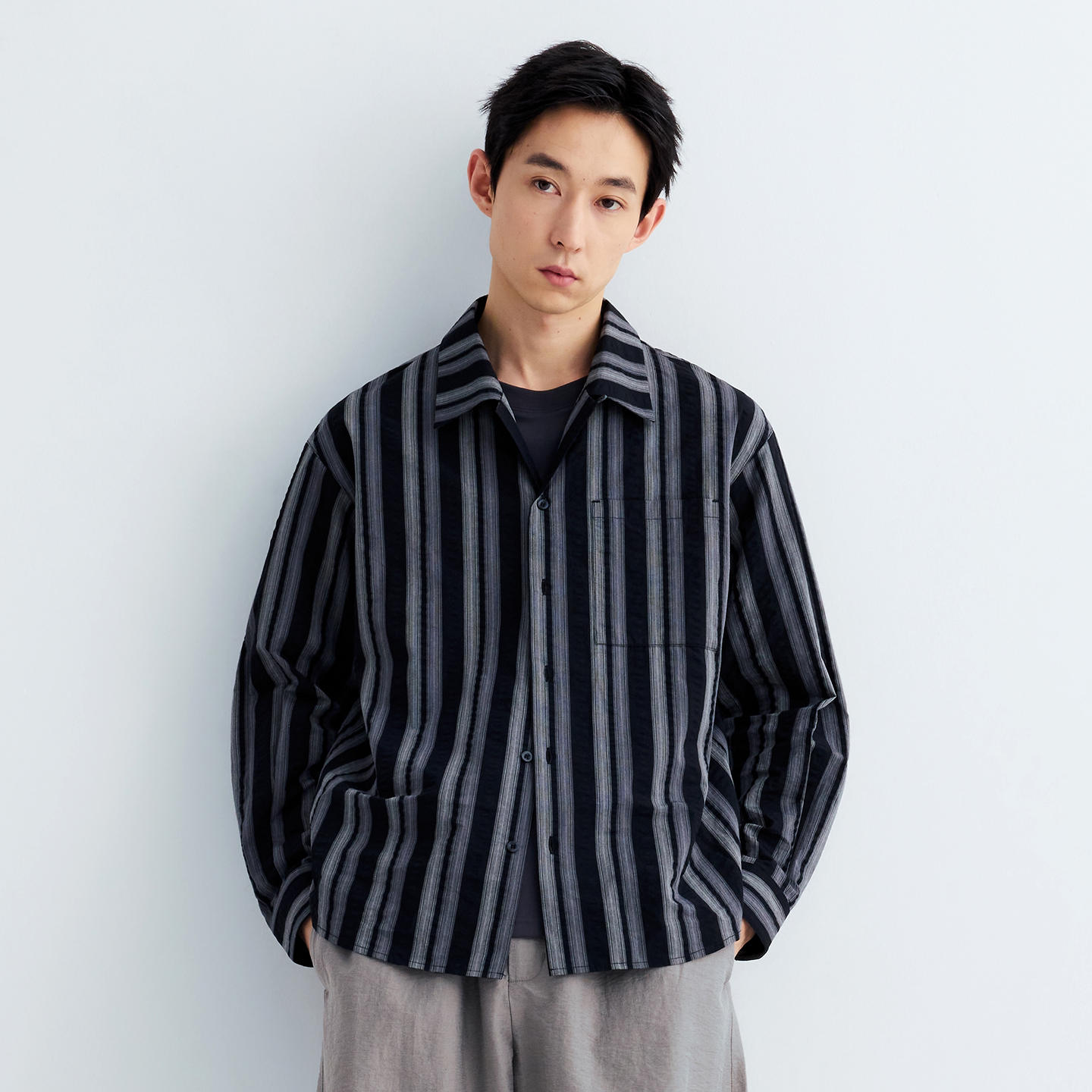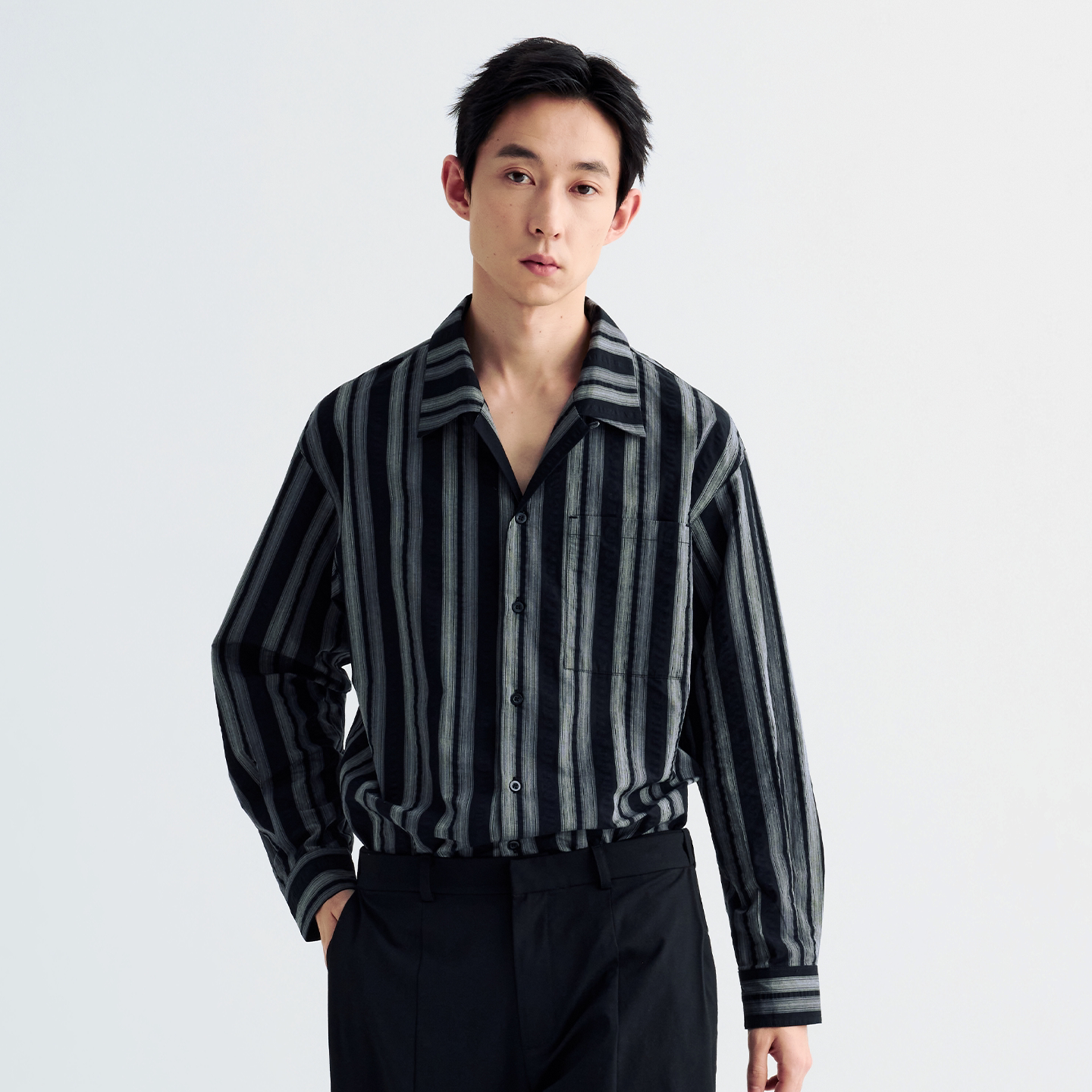 男装 MOSEALAND古巴领长袖 翻领开衫 休闲风宽松春秋季 贴袋条纹衬衫