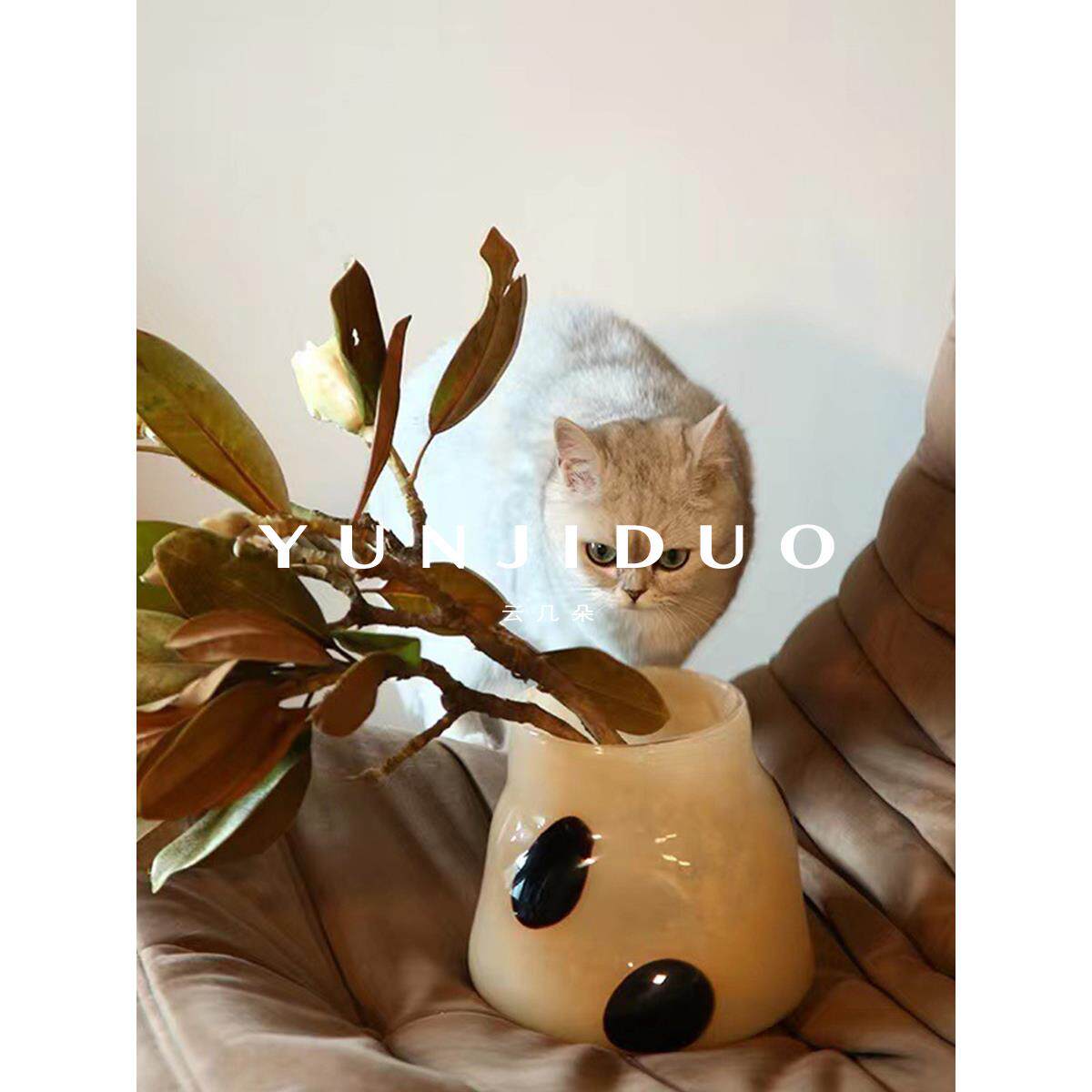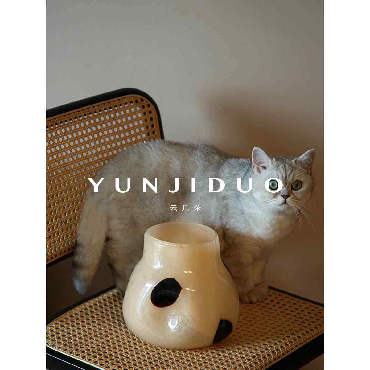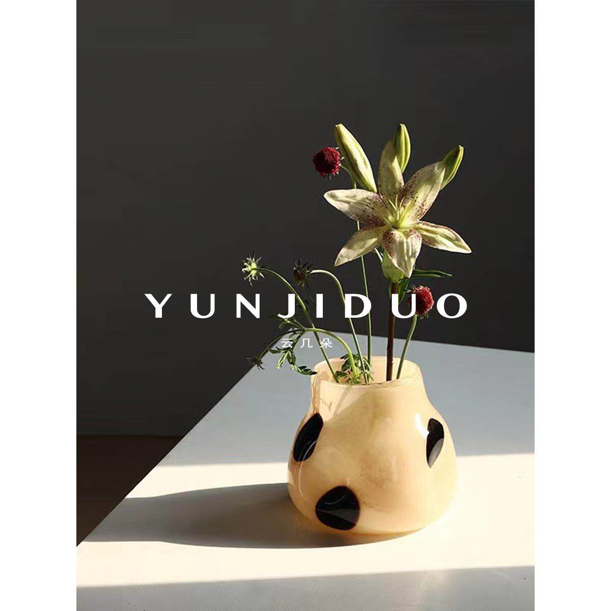 云几朵 覆古可爱不规则黑点玻璃落地花瓶桌面摆件礼物创意插花瓶