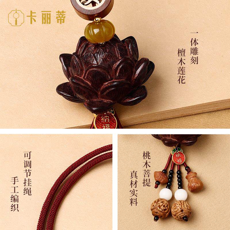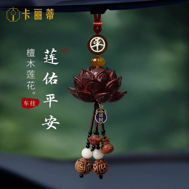 2025新款 桃木莲花汽车挂件国风高档后照镜吊坠平安车载挂饰男女款