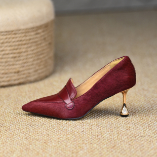 小个子尖头细跟单鞋 一脚蹬平底女鞋 7cm高跟鞋 新款 2026春季 misili