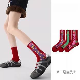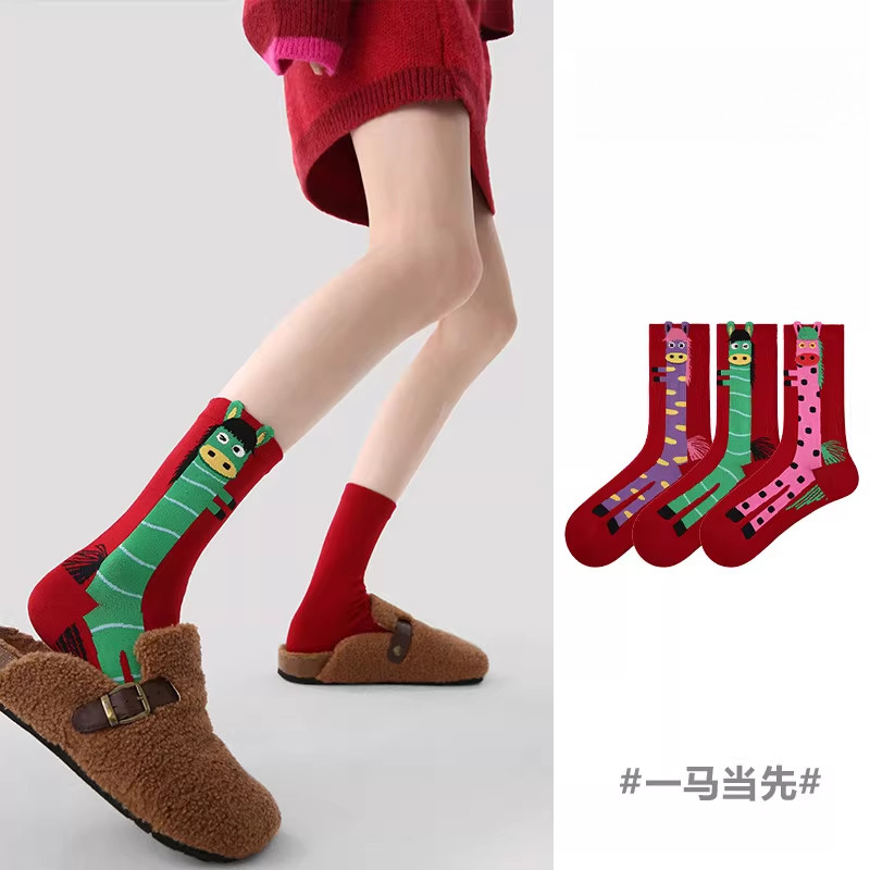 Renaissance马年2026年本命年袜子女款 秋冬中筒袜新年喜庆大红袜