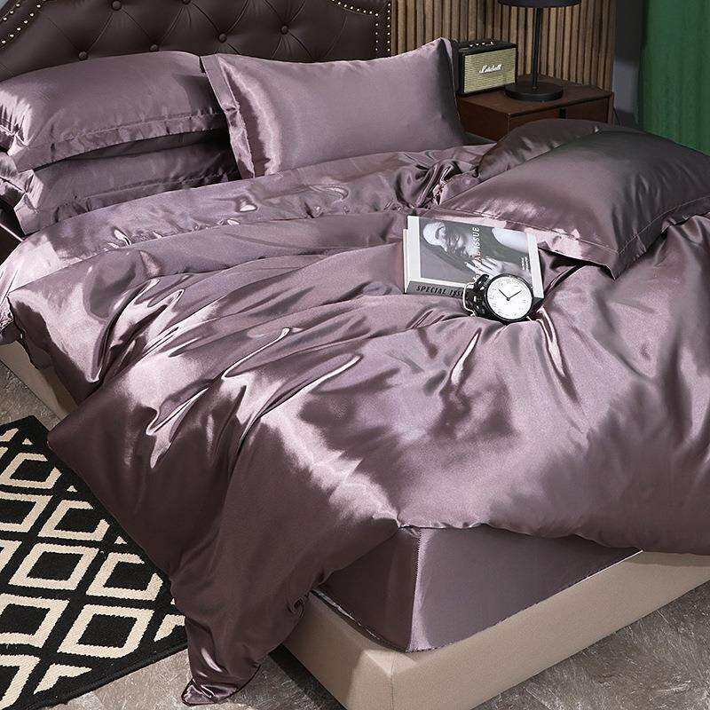 纯色真丝四件套桑蚕丝绸缎冰丝被套床单床笠床上用品轻奢风四季 款