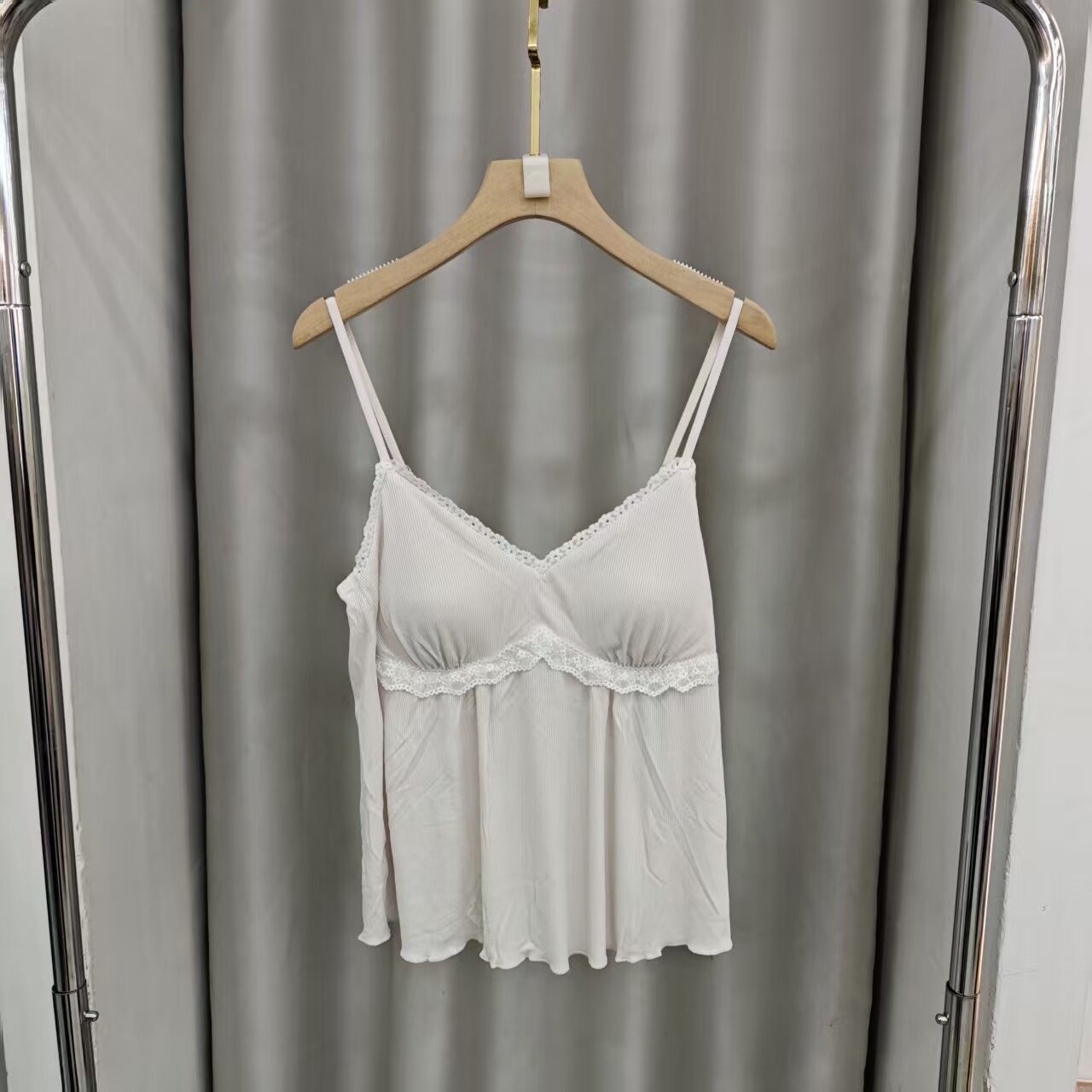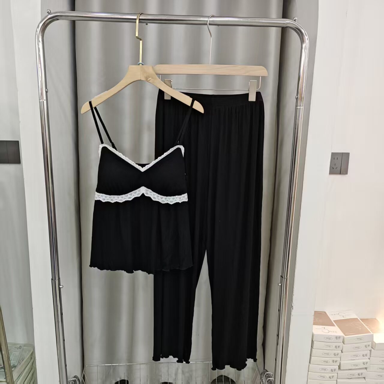 带胸垫女睡衣宽松舒适可外穿家具人2016 套装 新款 竖条蕾丝吊带长裤