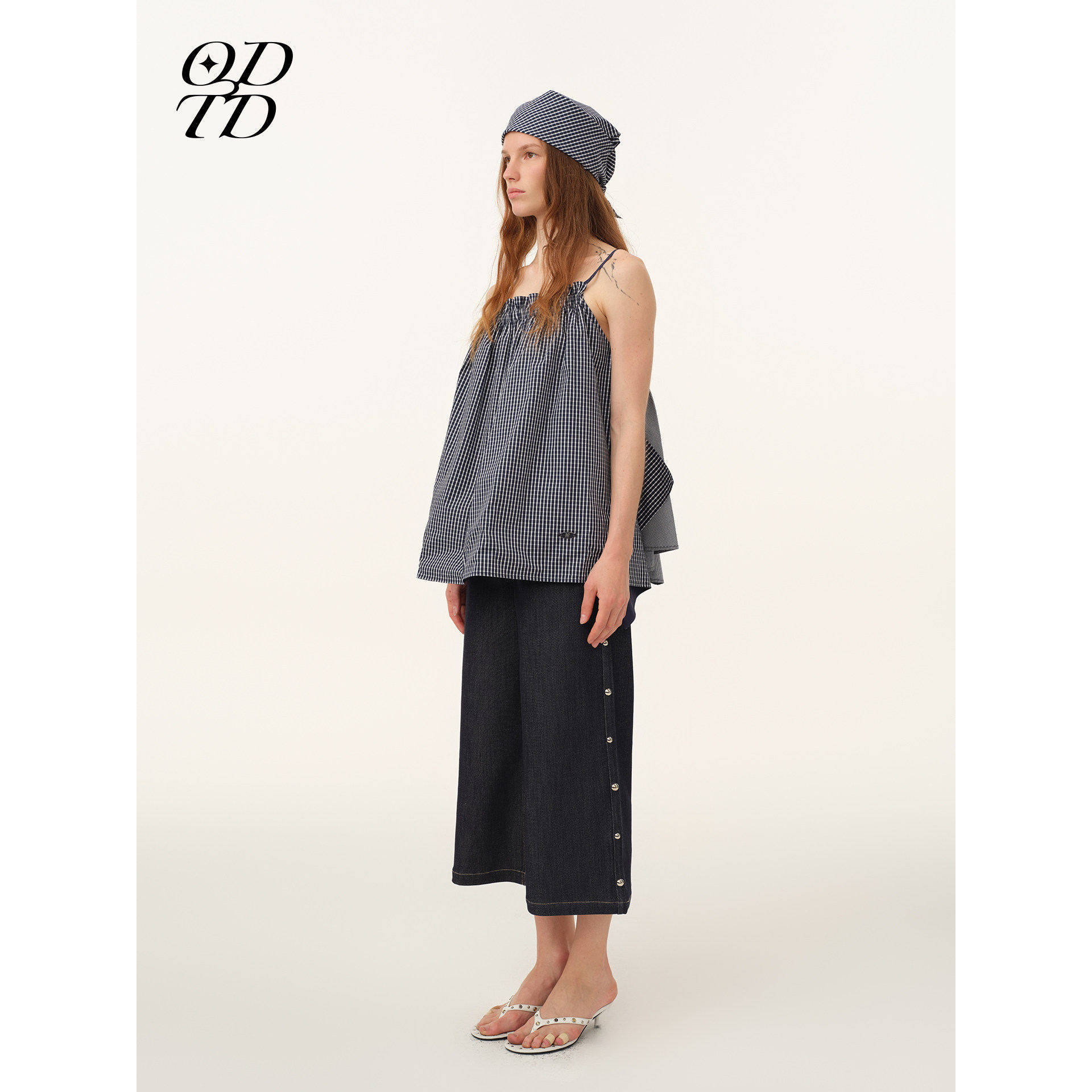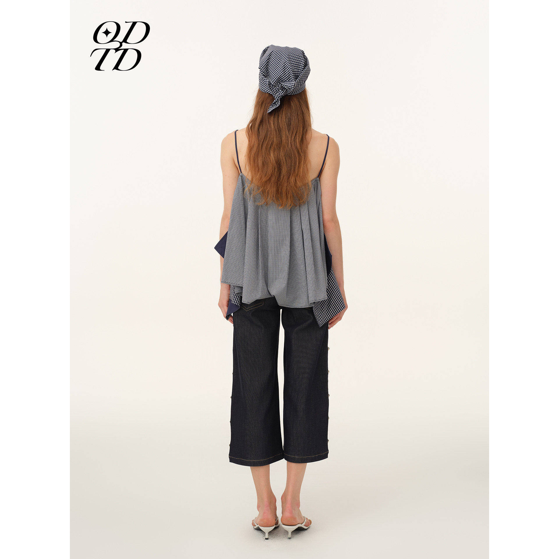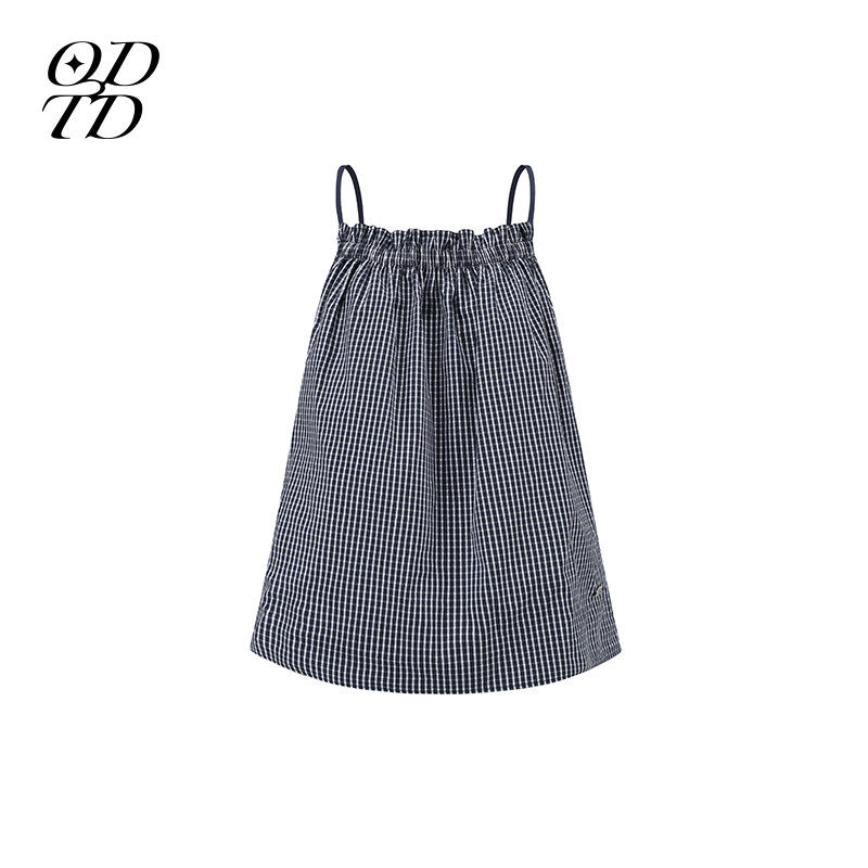 双面穿抽绳撞色格纹吊带上衣度假风 ODTD26春夏新款 设计师女装