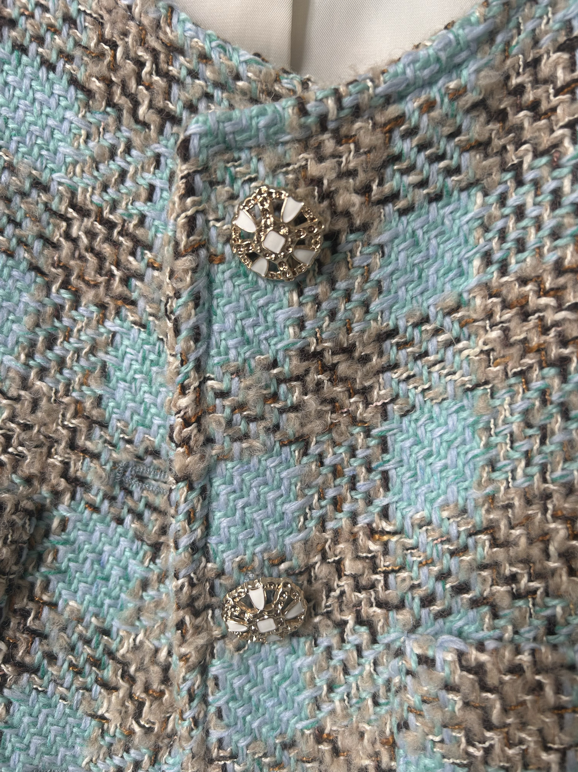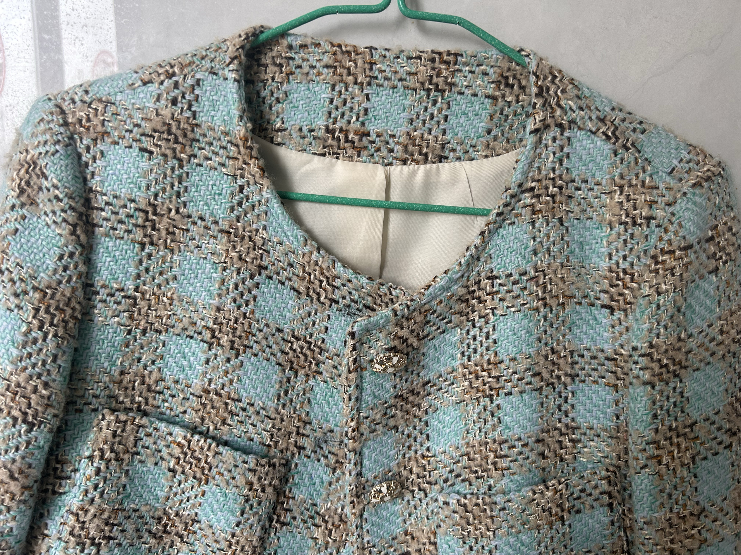 清仓价蓝色圆领小香风女式 毛呢外套手工订制