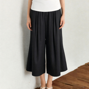 高腰抽褶垂坠显瘦黑色七分休闲裤 新款 女夏季 百家好简约百搭阔腿裤