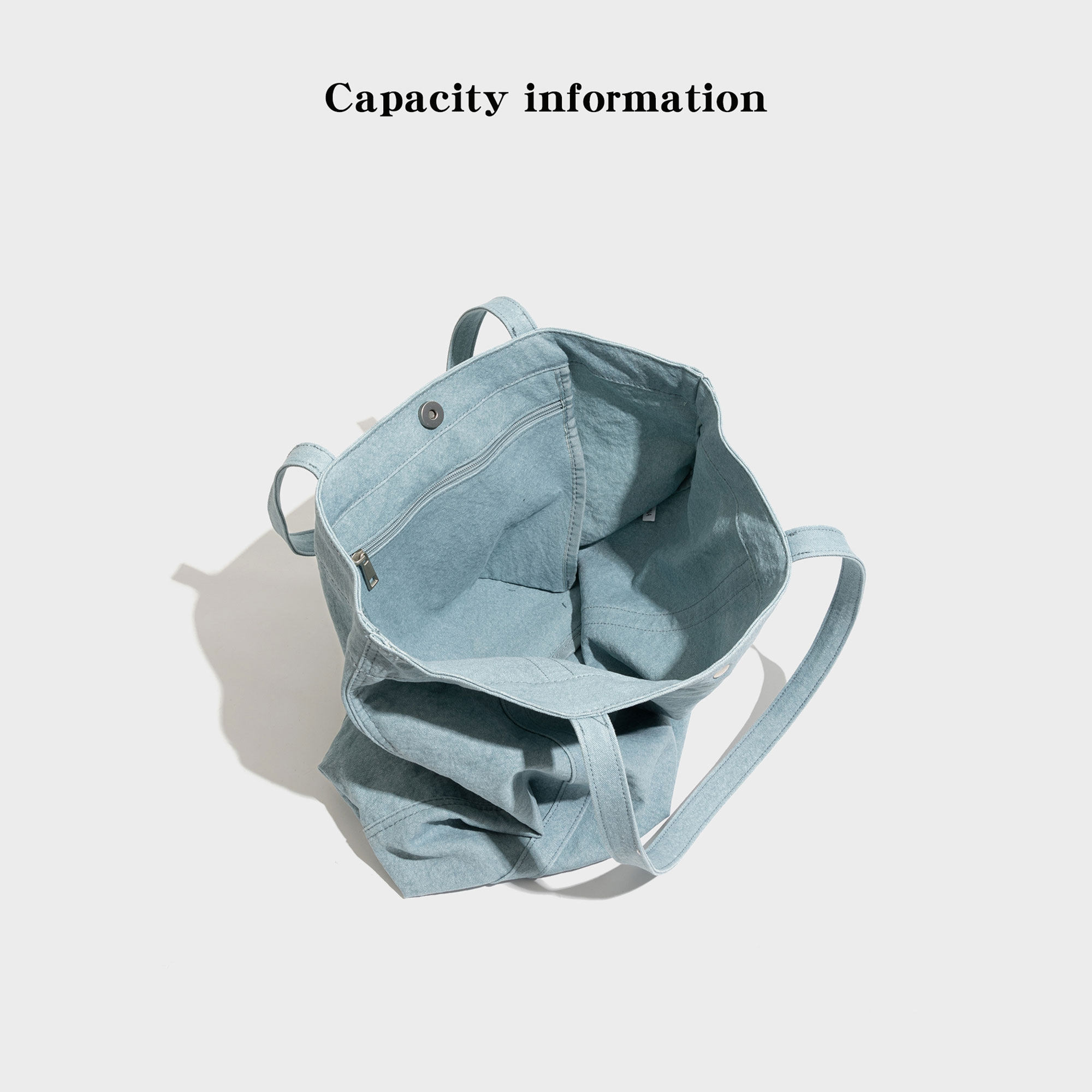 CKKUI 学生上课大容量通勤手提单肩包 简约学院风牛仔包包2026新款