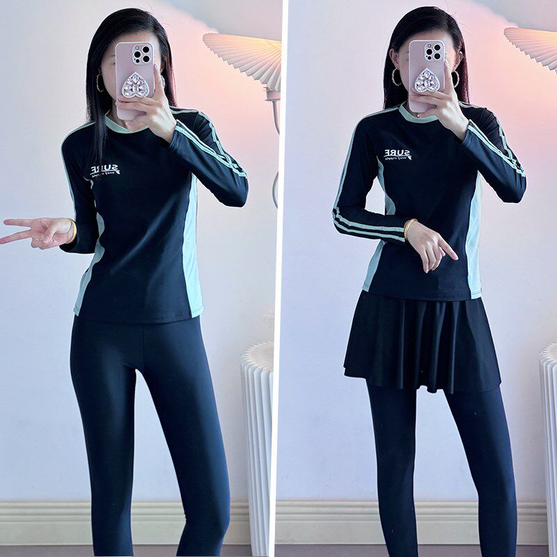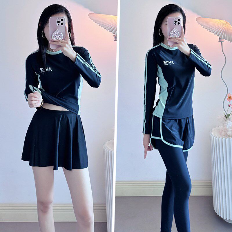 泳衣女2025新款 防晒冲浪服泡温泉遮肉显瘦泳 高级感分体保z守长袖