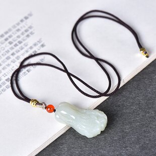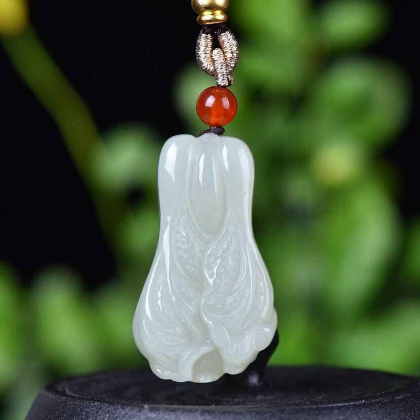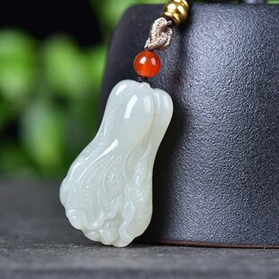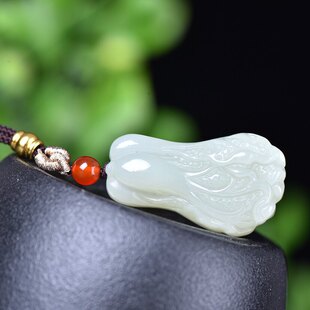 天然玉石和田玉青白玉白菜吊坠项链雕刻挂件立体遇百财玉佩