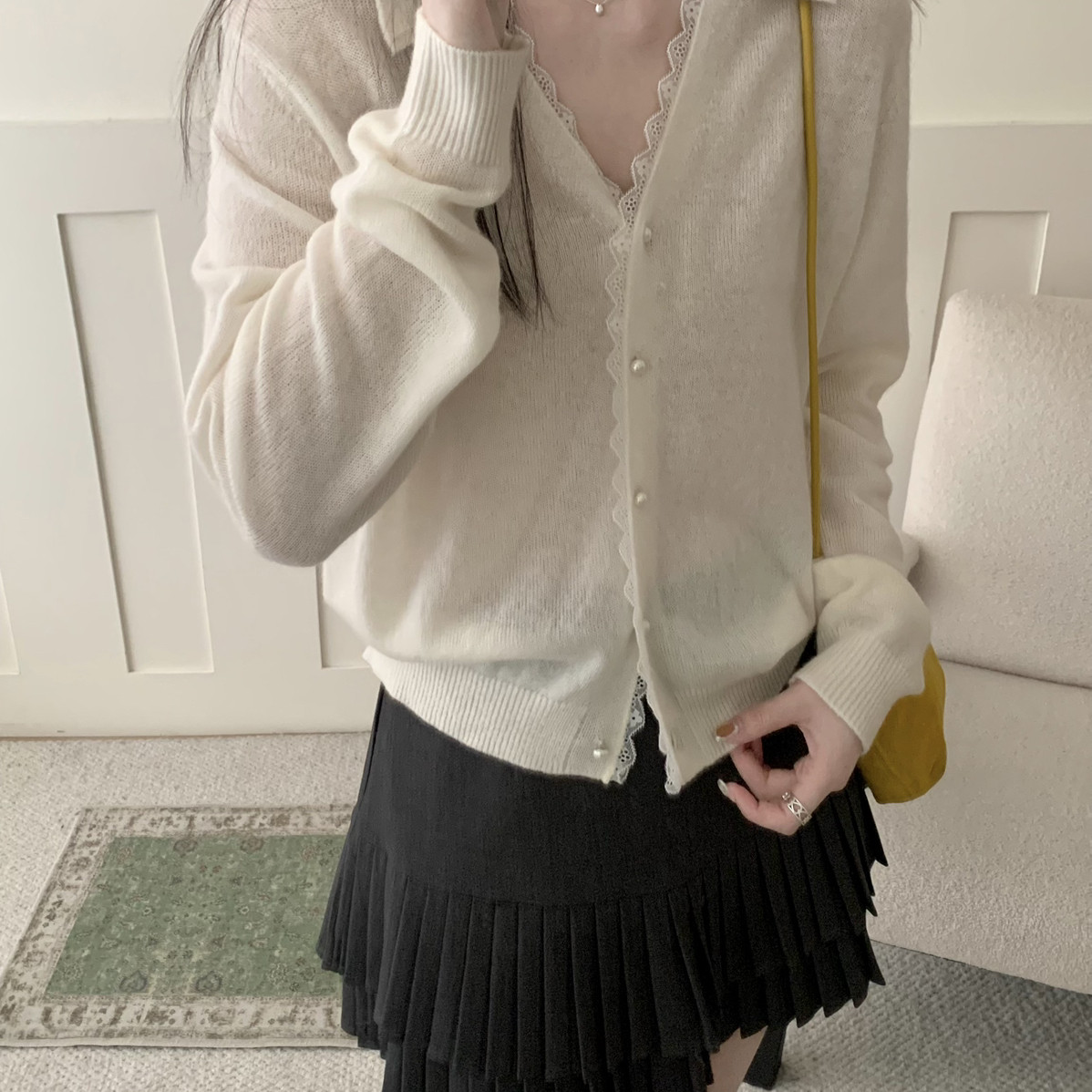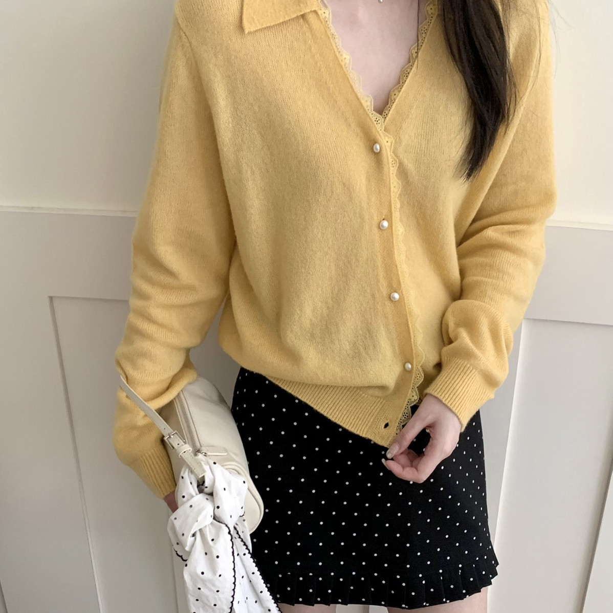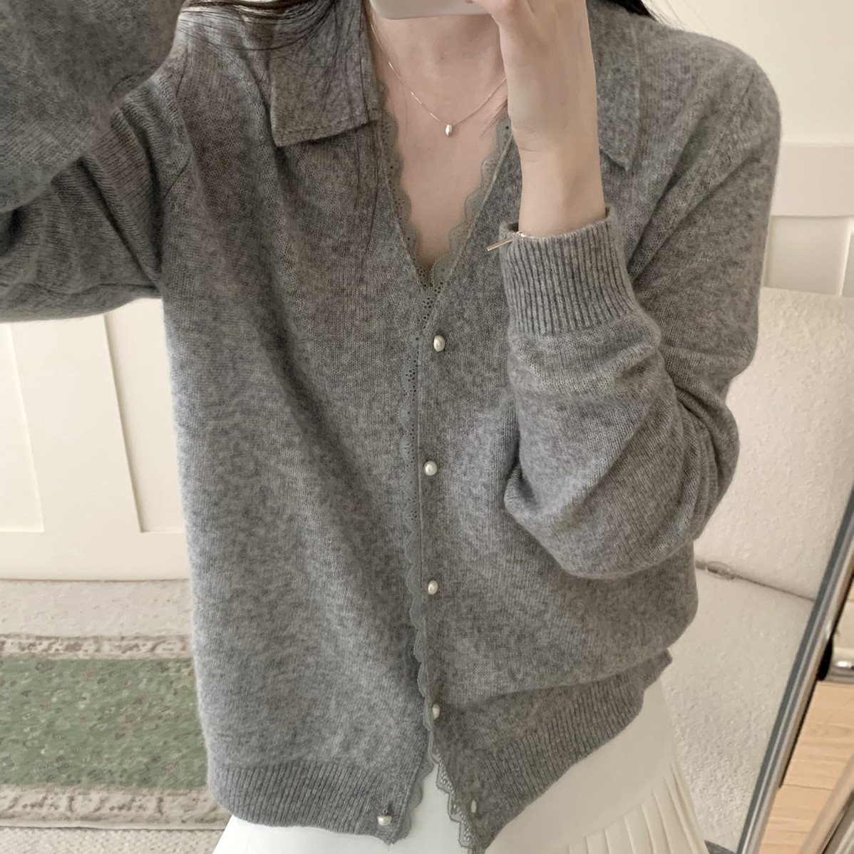 XY6016 含3.0羊驼毛 MORROW 美清新少女感蕾丝边小翻领针织开衫