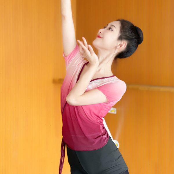 古典舞练功服女身韵基训纱衣短袖 加钻渐变中国舞网纱艺考上衣 开衫