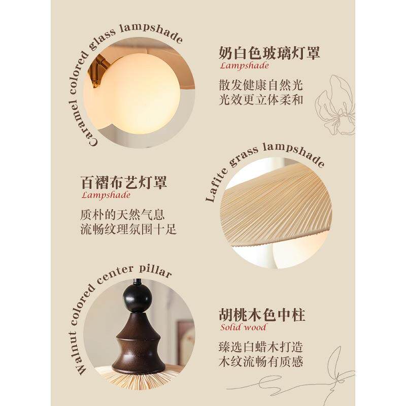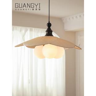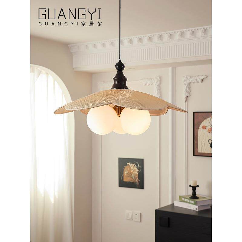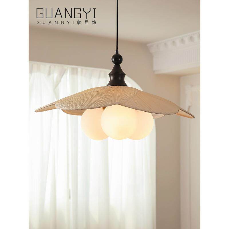 玻璃魔豆吊灯卧室灯法式 复古实木书房灯中古布艺餐厅灯2025年新款