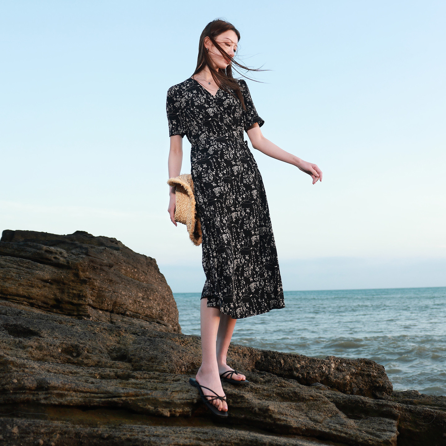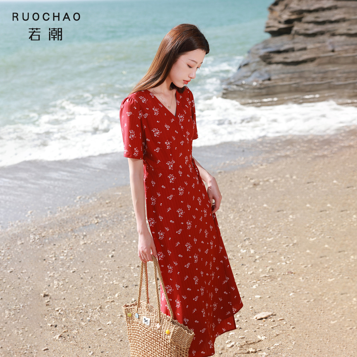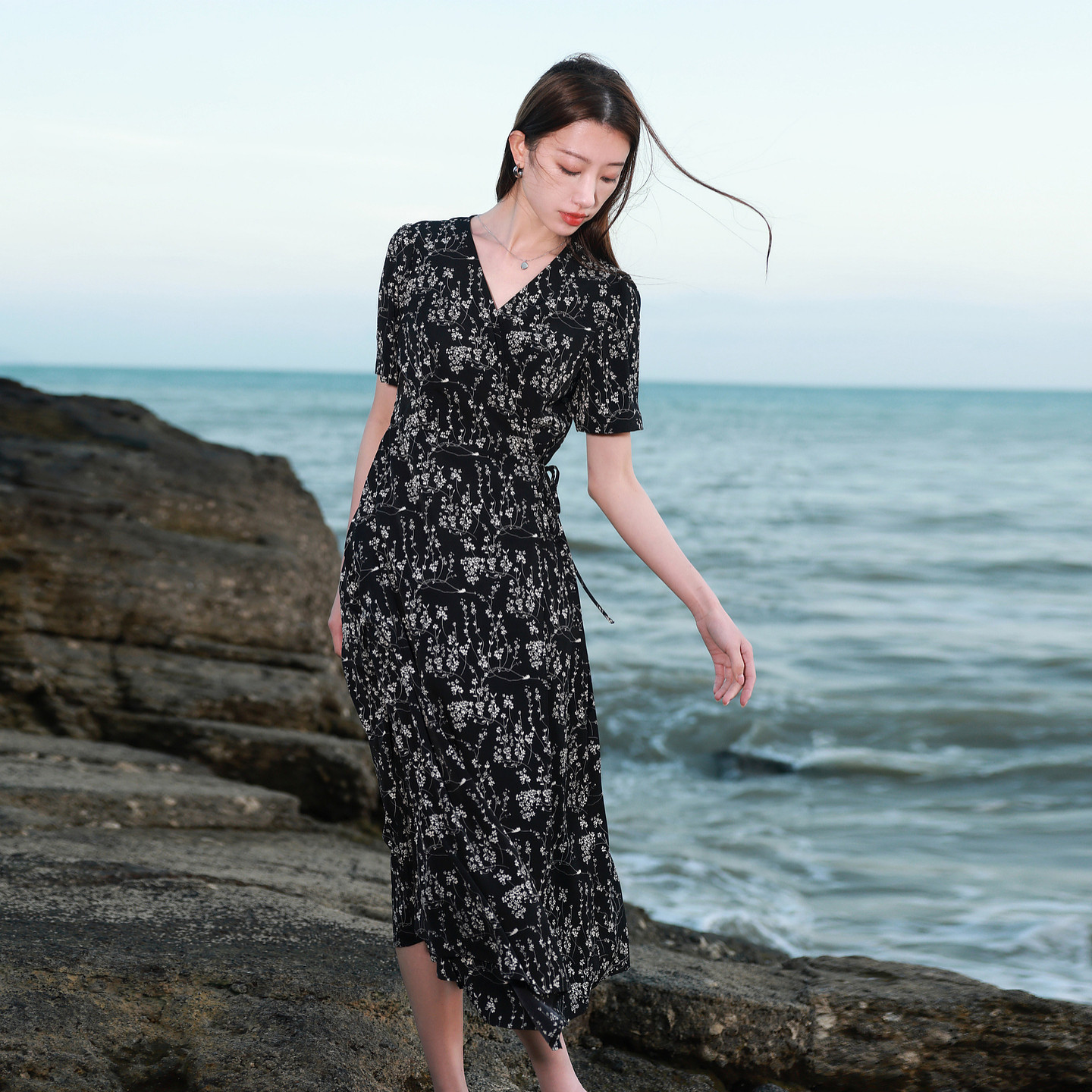 法式 三彩若潮大码 新款 2025秋季 碎花连衣裙茶歇裙收腰长裙胖MM 女装