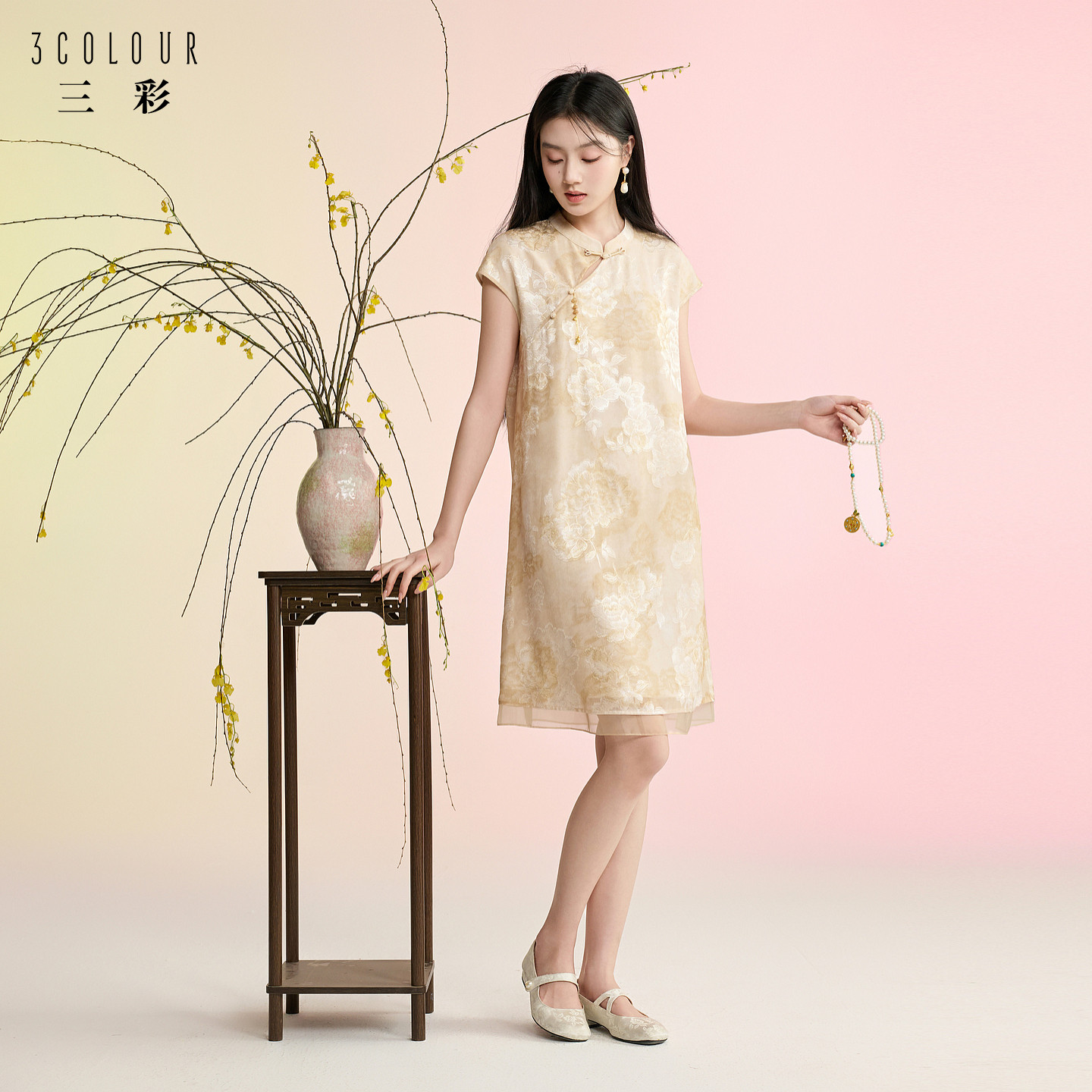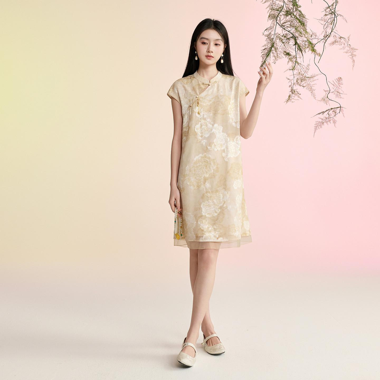 溪风晚月 立领连衣裙新中式 三彩2026夏季 短袖 A字裙宽松C女 新款