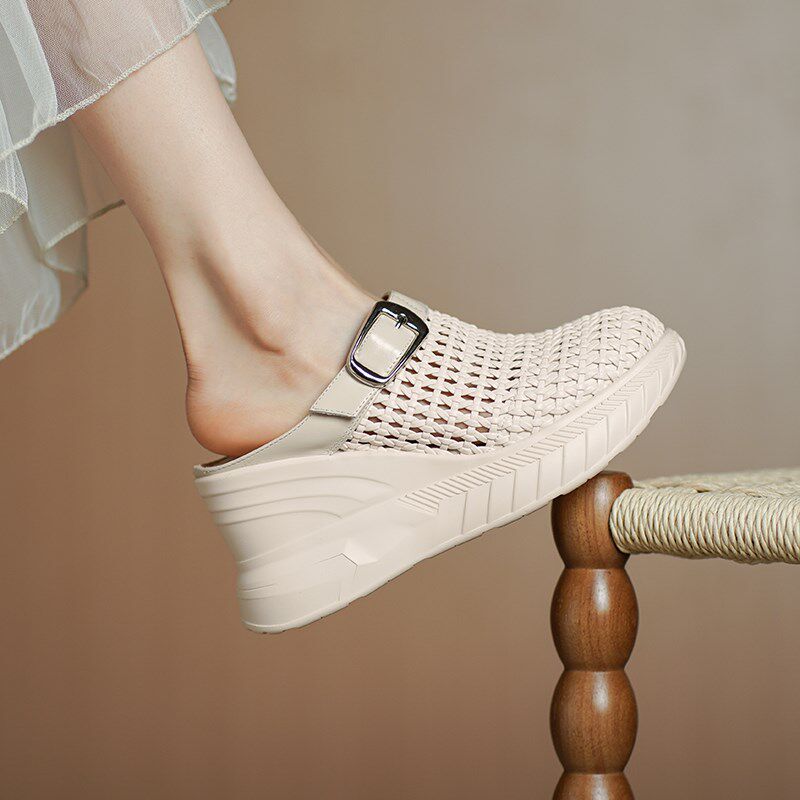 包头百搭女拖鞋 新款 夏季 葡萄家8.5cm真皮松糕底坡跟粗跟外穿凉鞋