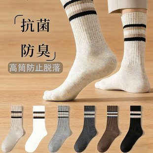 透气男士 男生商务运动夏款 休闲 吸汗中筒防臭条纹男袜四季 袜子男款
