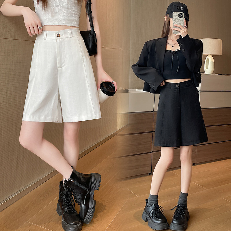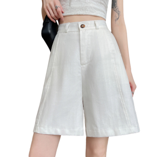 五分裤 胖MM日系复古白色棉麻西装 a字亚麻阔腿中裤 薄款 女2026夏季