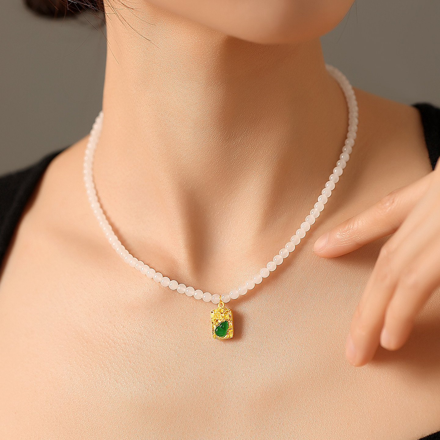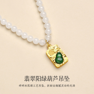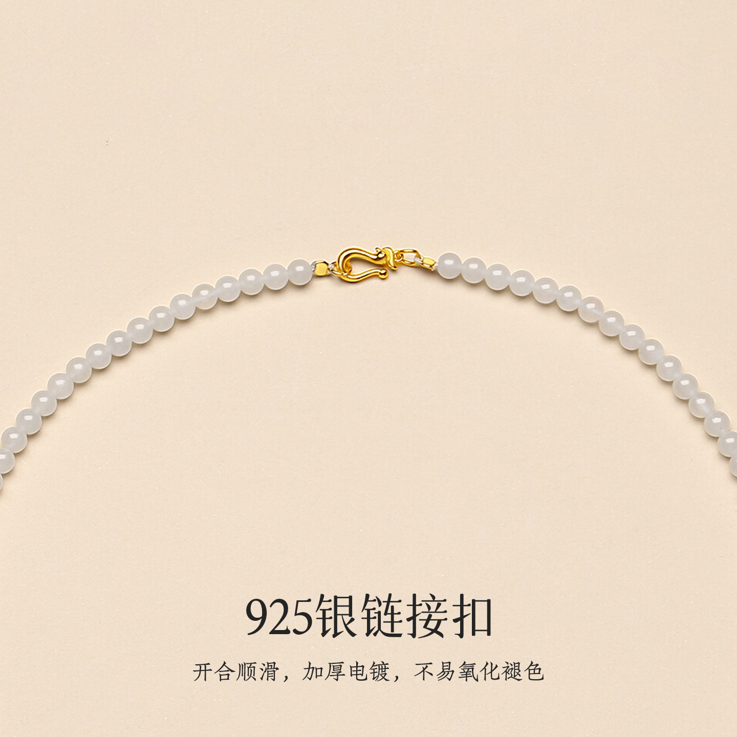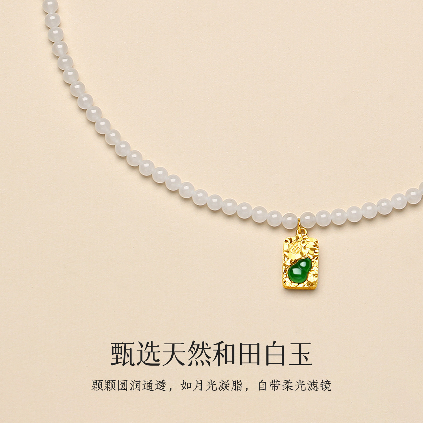 天然和田玉白玉小米珠项链女纯银碎冰冰阳绿翡翠葫芦朱雀国风颈链
