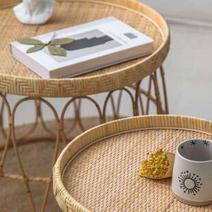 藤北欧编茶几小圆榻榻飘窗米角几桌STY子小户型茶台桌民宿沙发桌