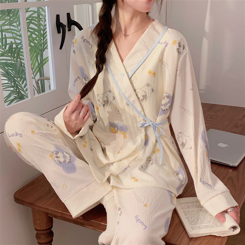 孕妇睡衣女夏季 怀孕期待产云朵棉和服月子服带胸垫产后哺乳衣 薄款