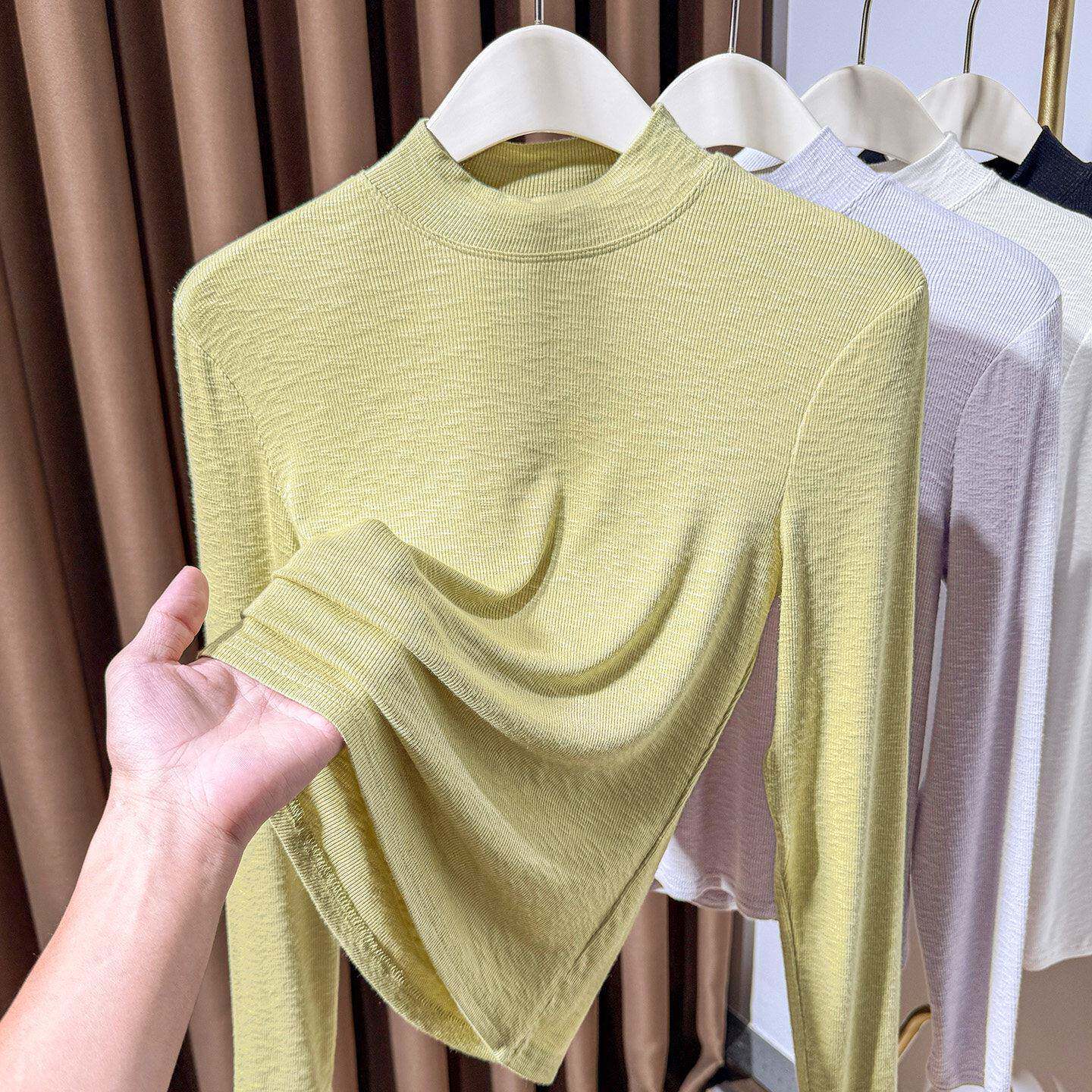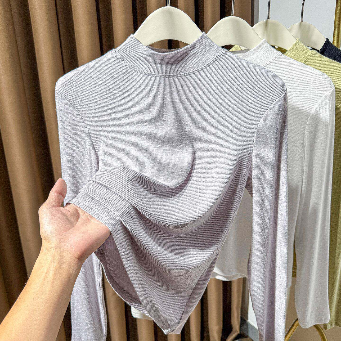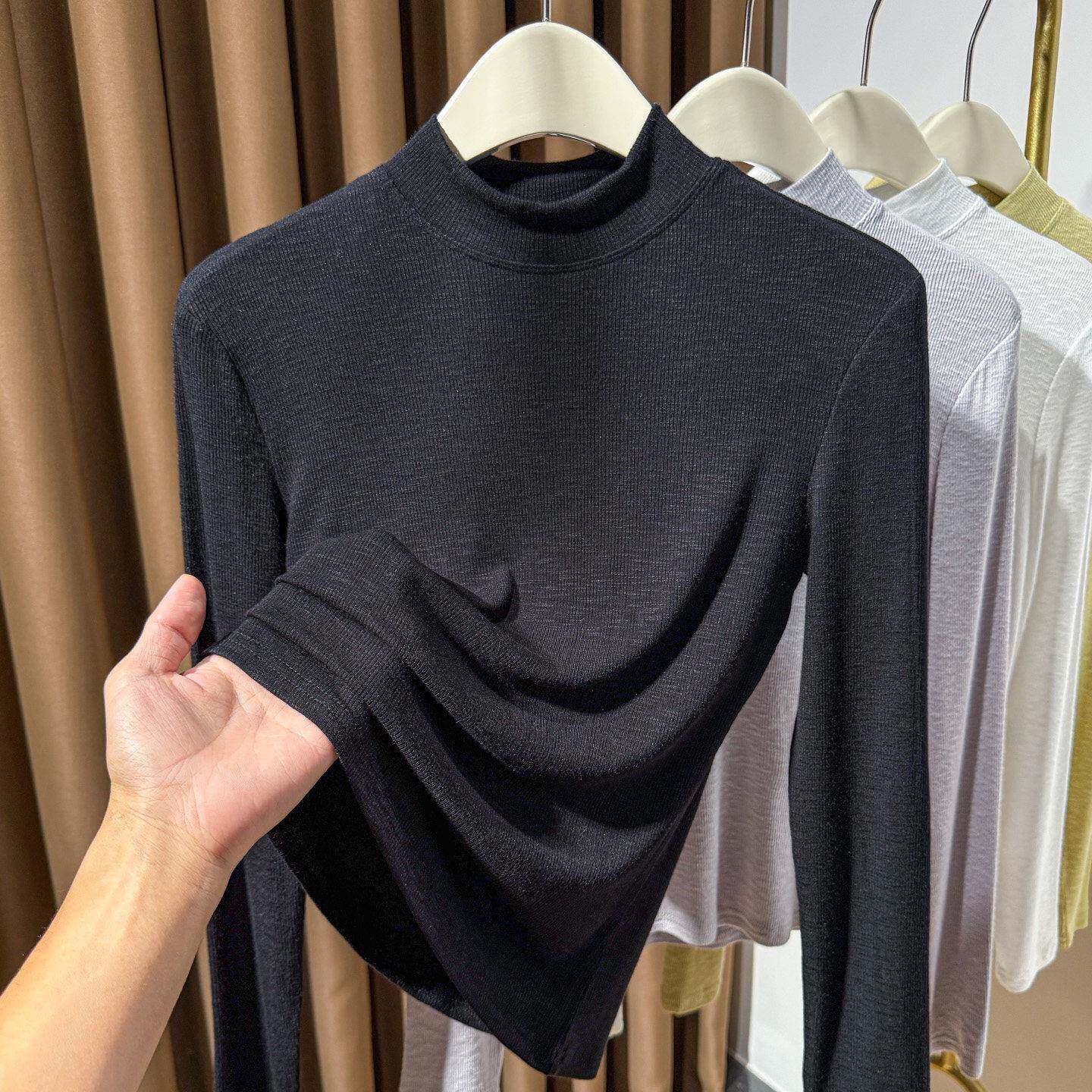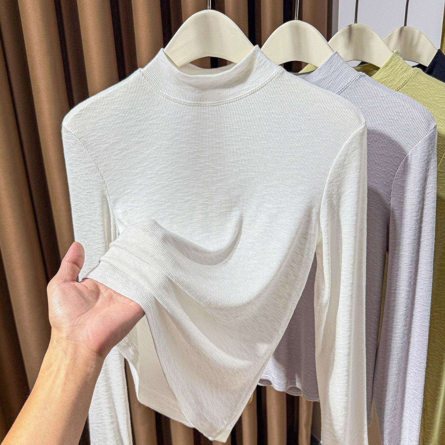 0325z 薄套头内搭半高领针织打底衫 春夏2026新款 竹节白色长袖