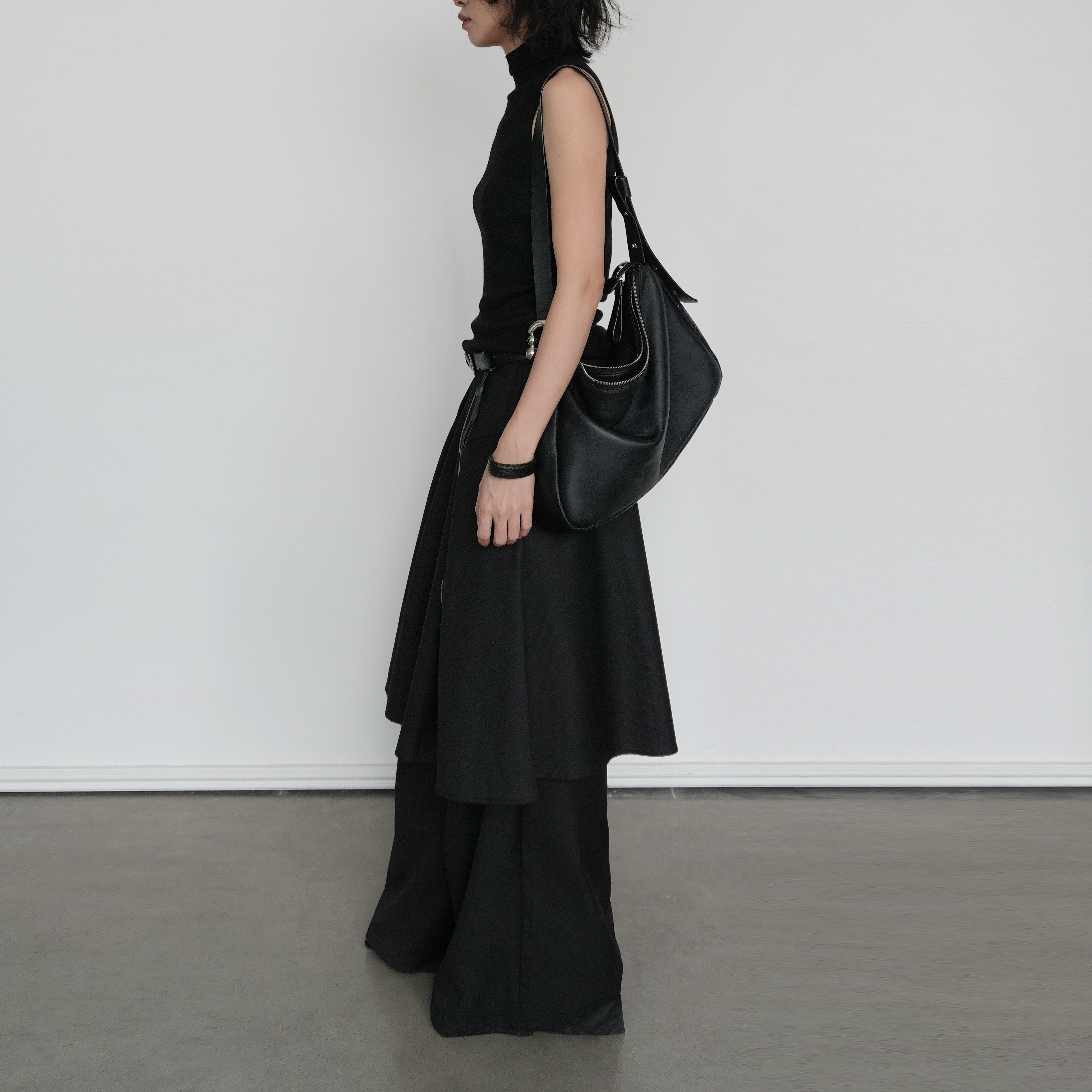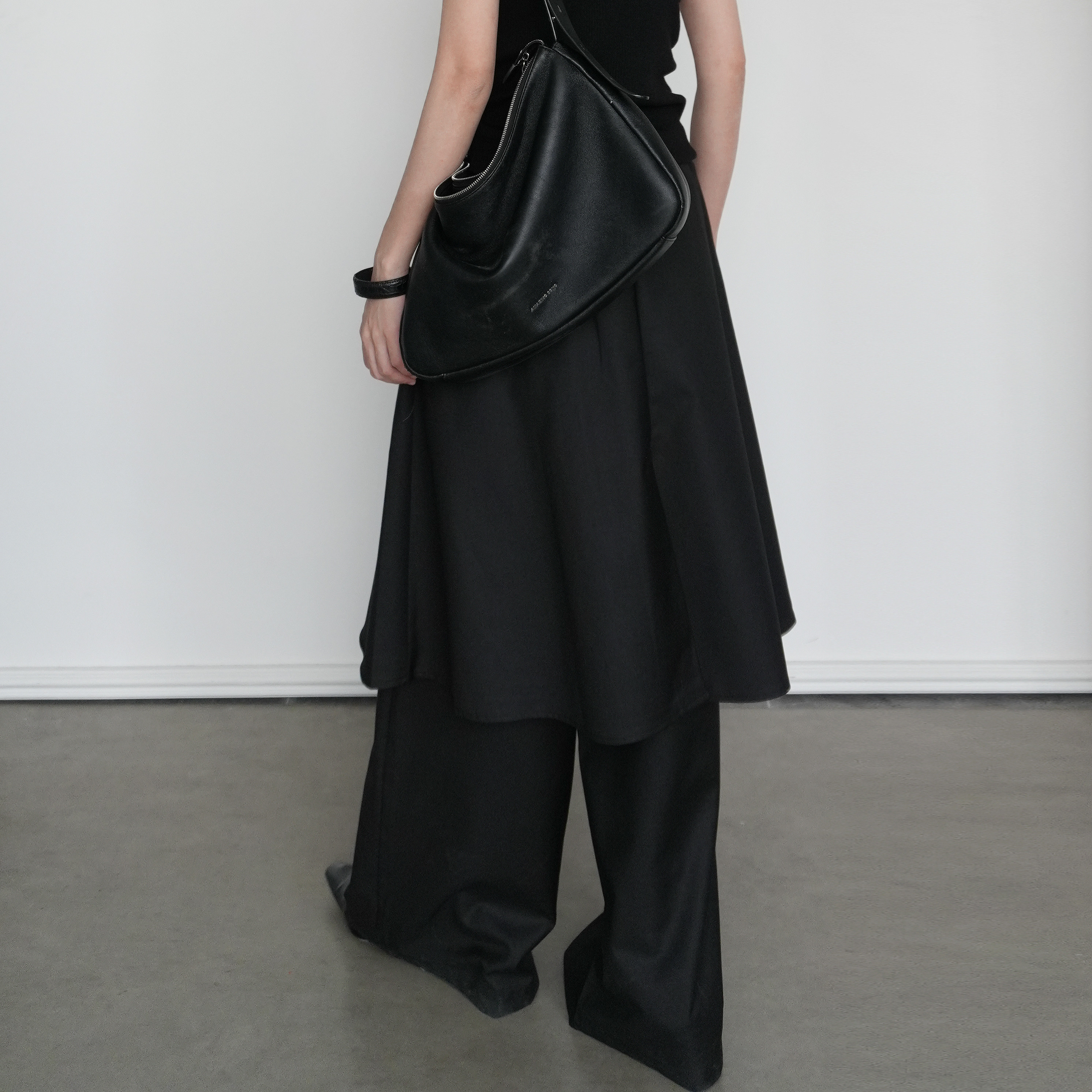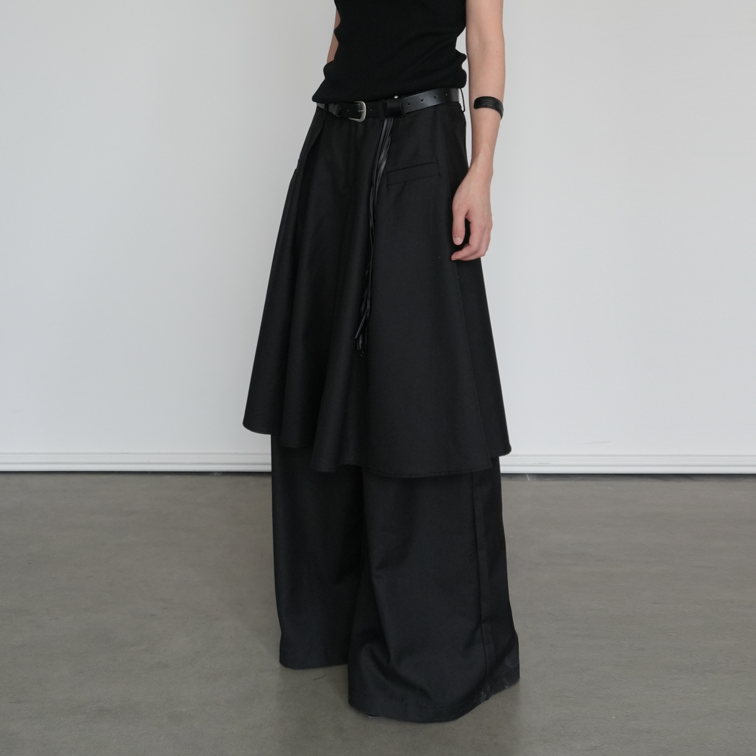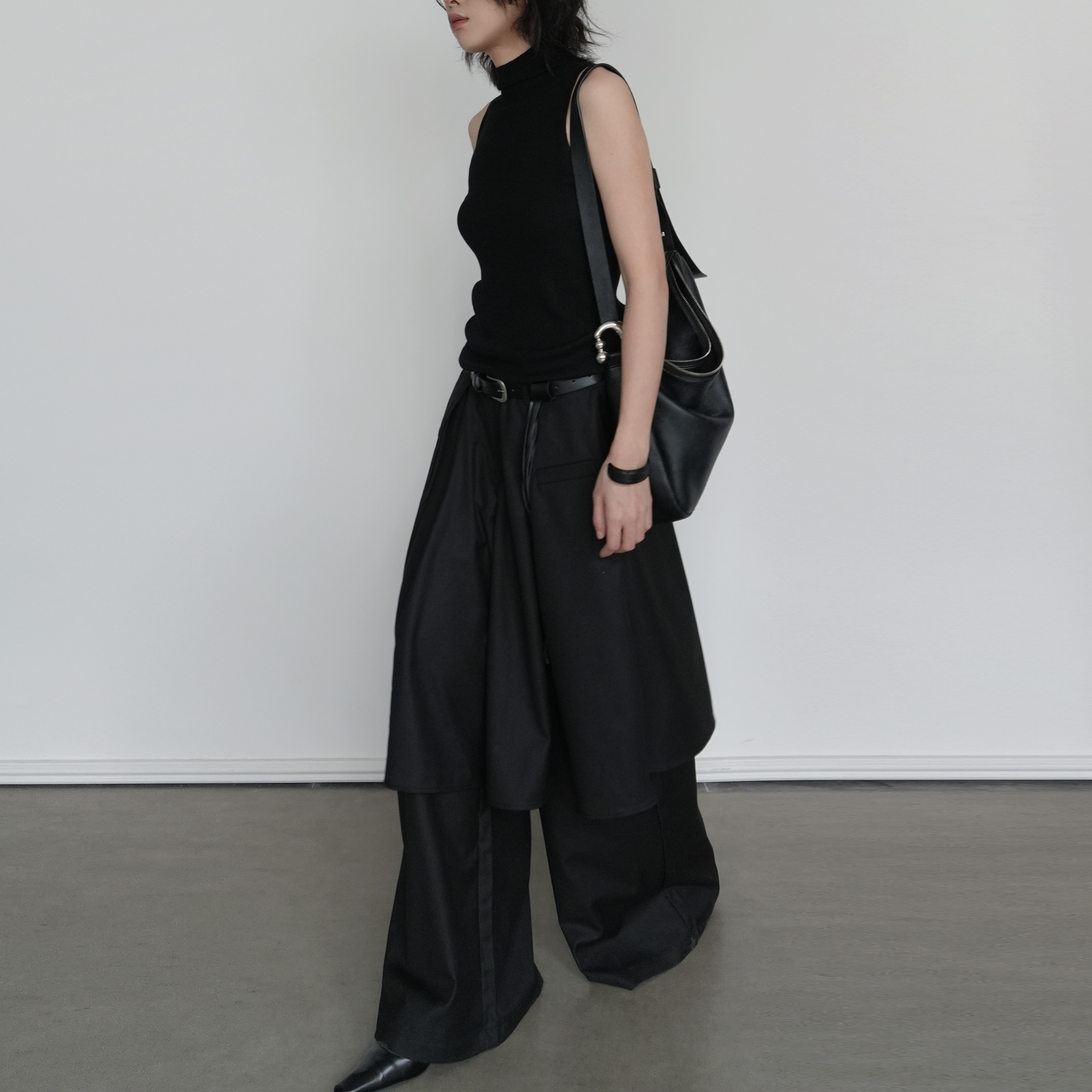 高腰显瘦阔腿长裤 尢系UXI 设计感不规则黑色假两件裙裤