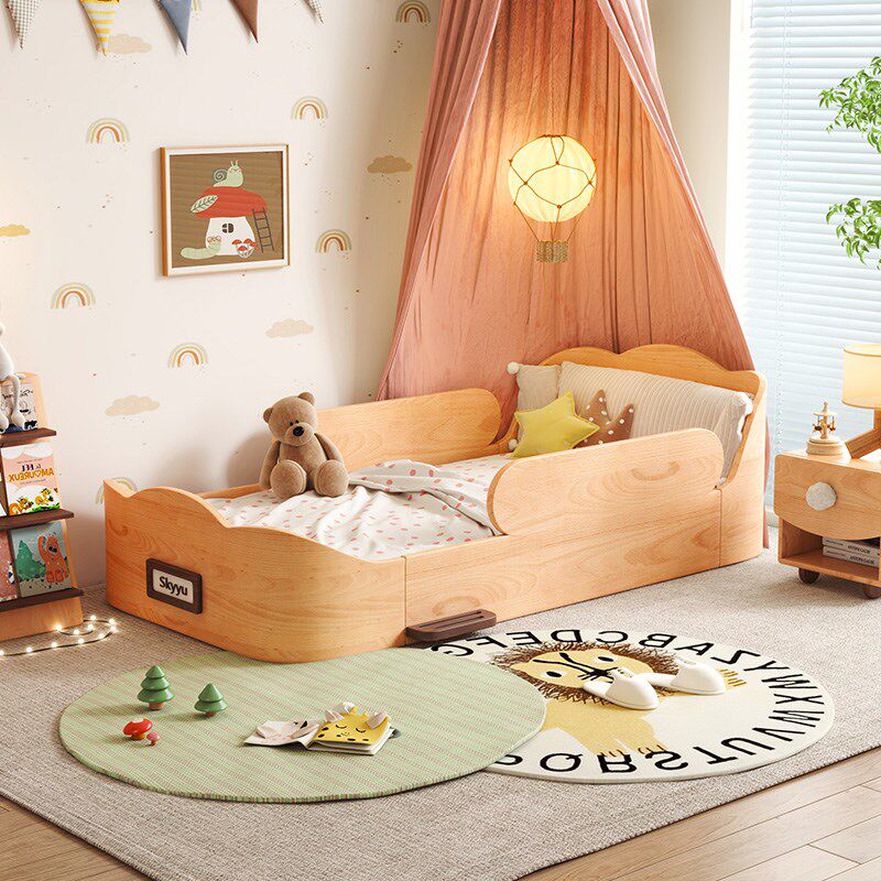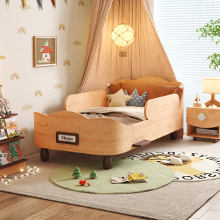 小岛实木儿童床带护栏婴儿小床拼接大床女孩公主床男孩单人床蒙氏
