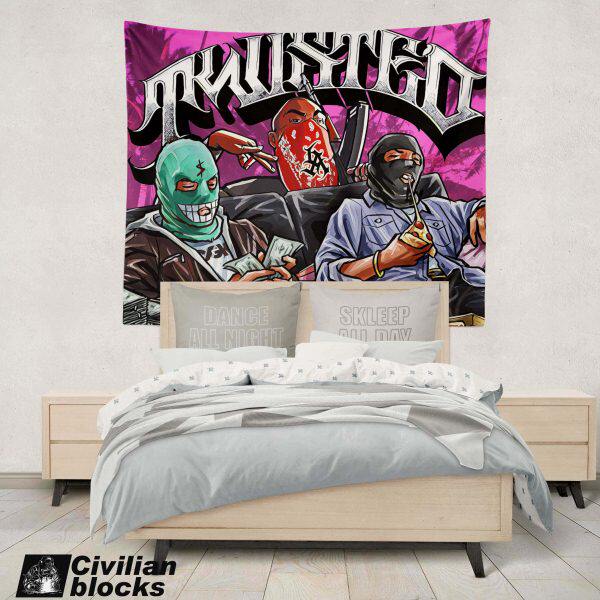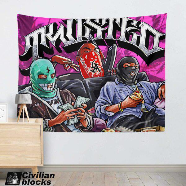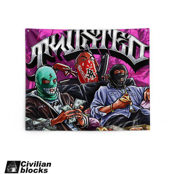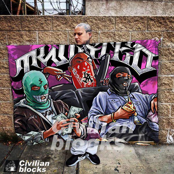 定制奇卡诺墨西哥西海岸花体字old school头套嘻哈hiphop背景布