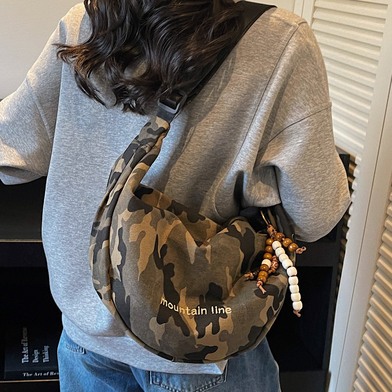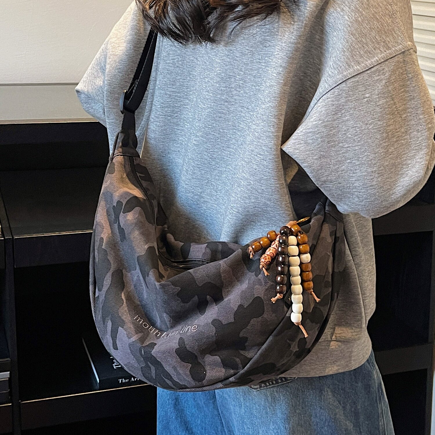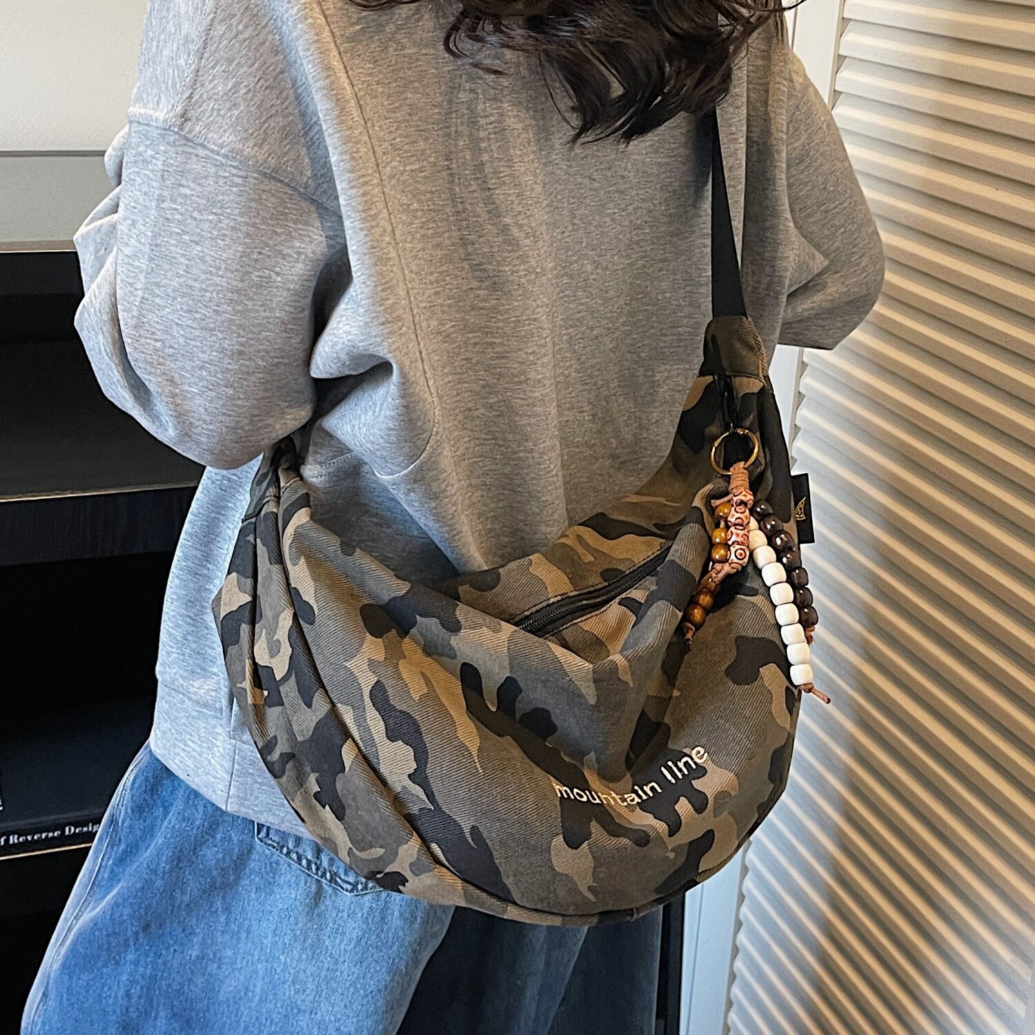 迷彩帆布斜挎包包女学生上课单肩通勤包小众百搭休闲大容量饺子包