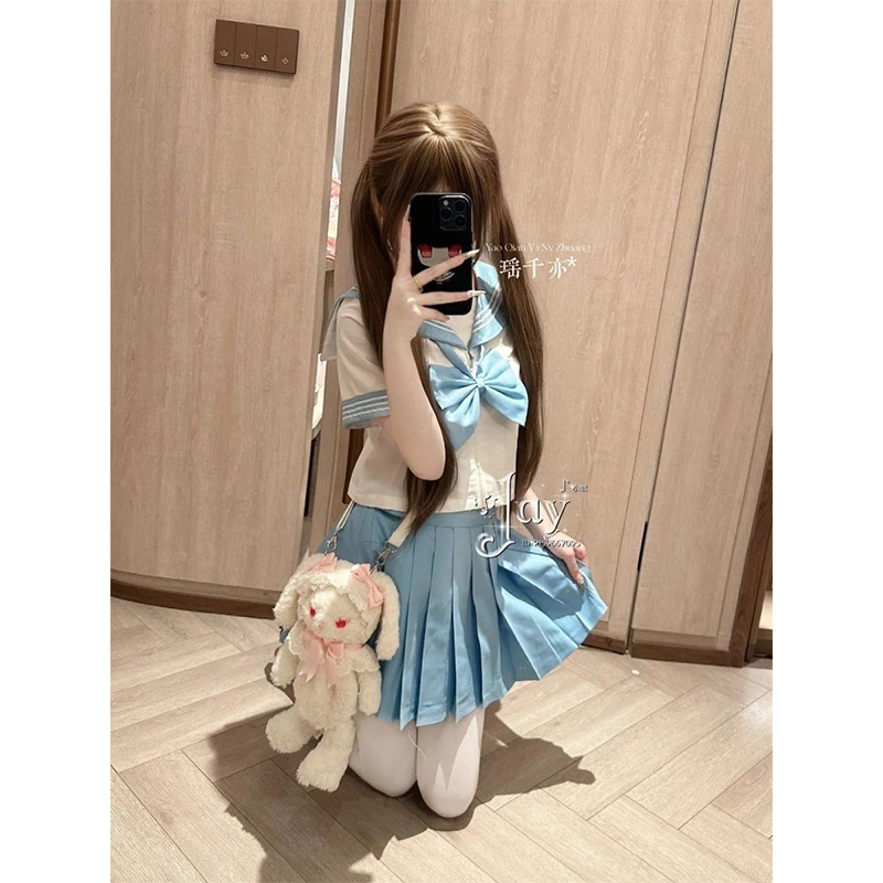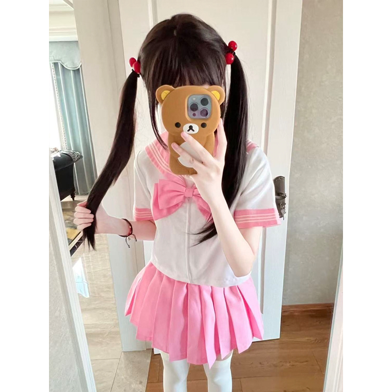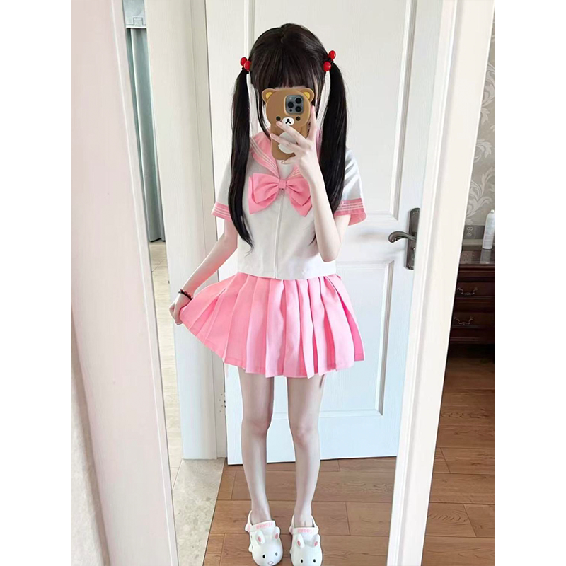 夏 jk制服浅蓝浅粉套装 彩虹战队水手服新款 日系学院少女感三本短袖