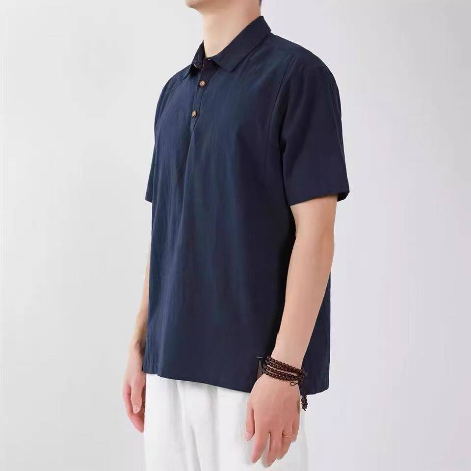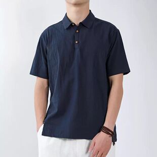 薄款 国风休闲潮流大码 透气T恤 衣男中式 清仓处理春夏棉亚麻短衬衫
